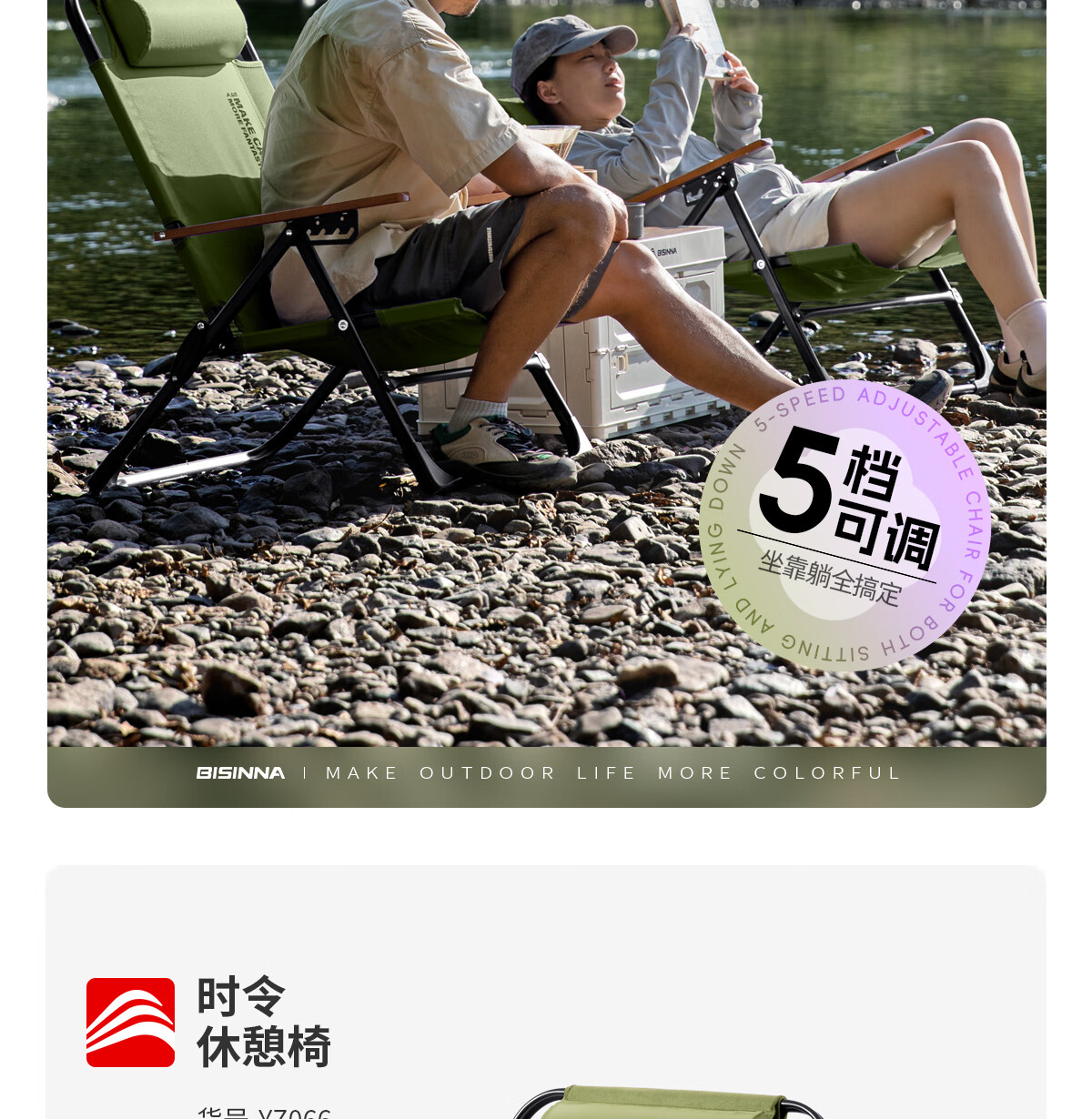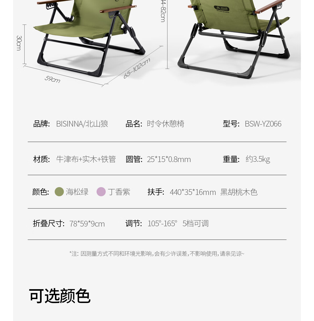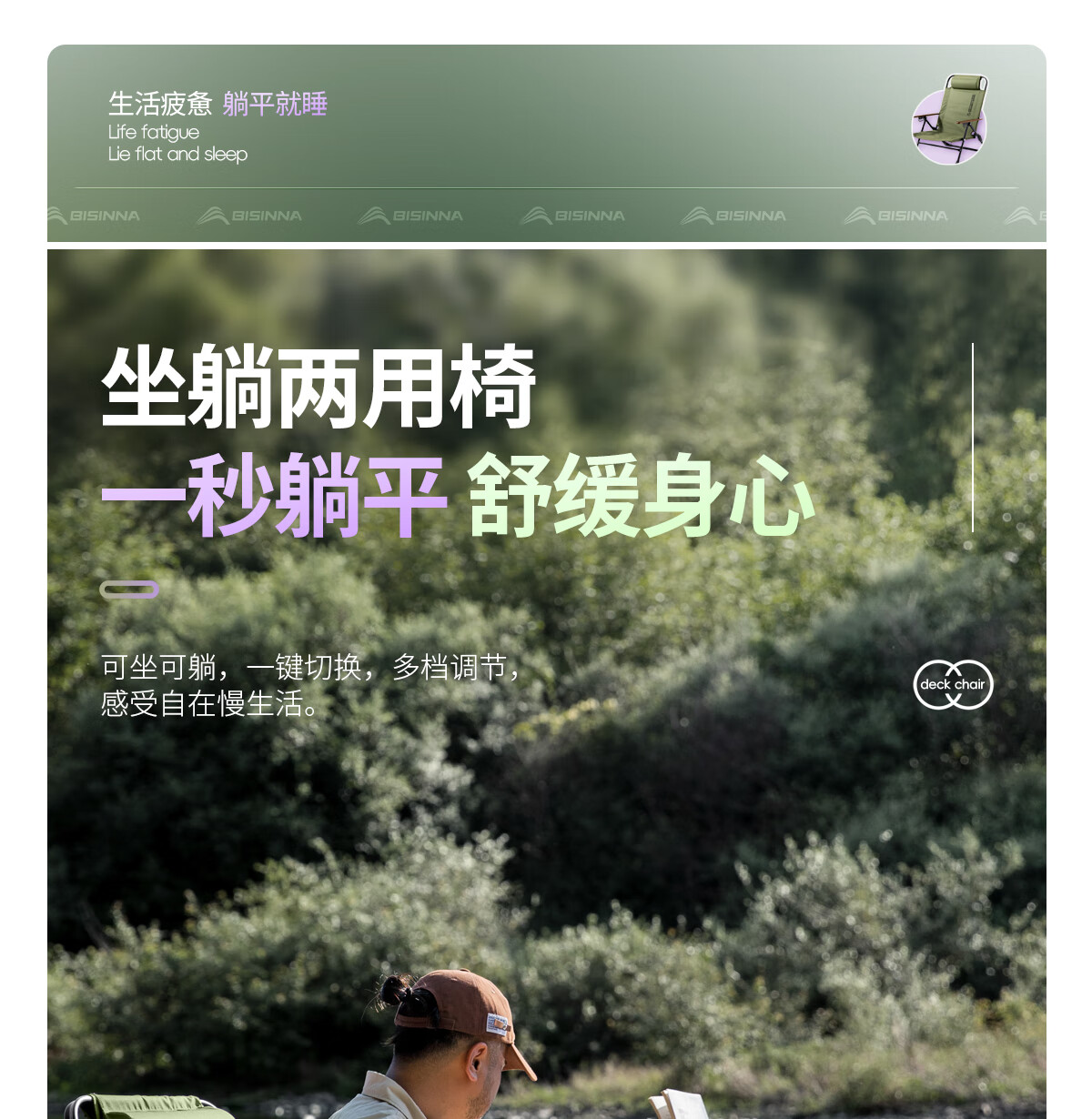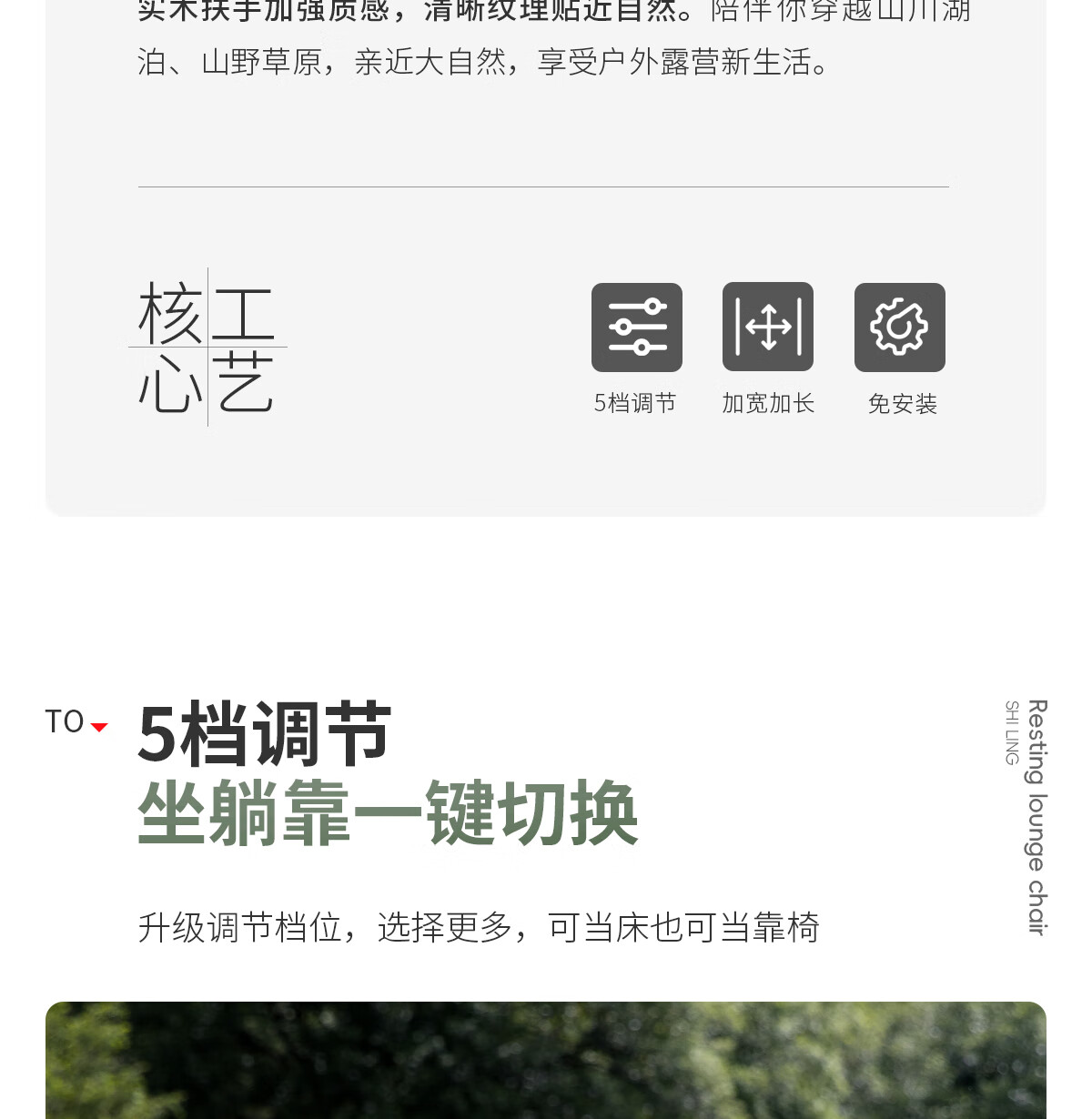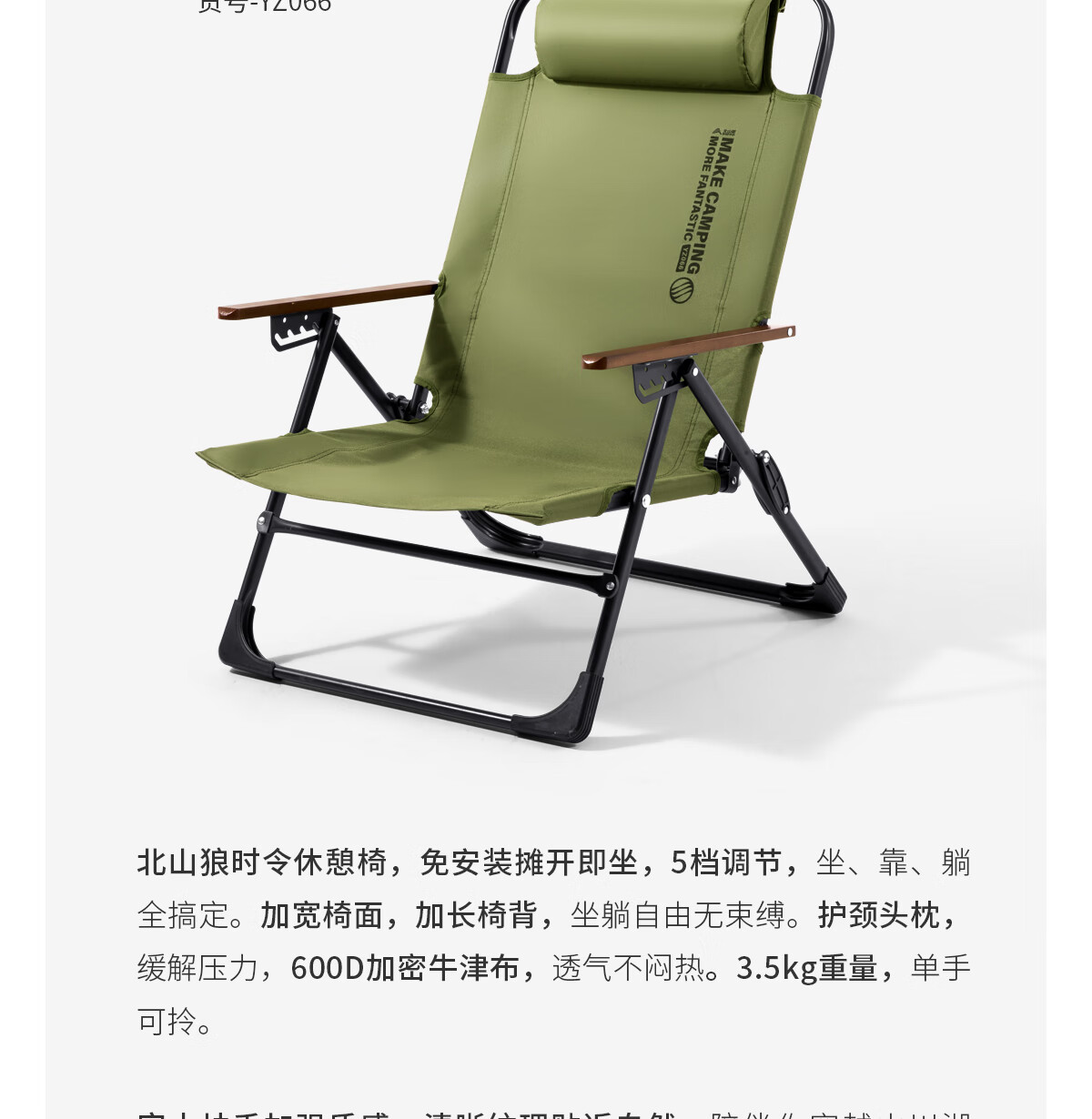 北山狼 便携式户外躺椅折叠 坐躺两用折叠椅 露营椅子 海松绿【五档调节】
