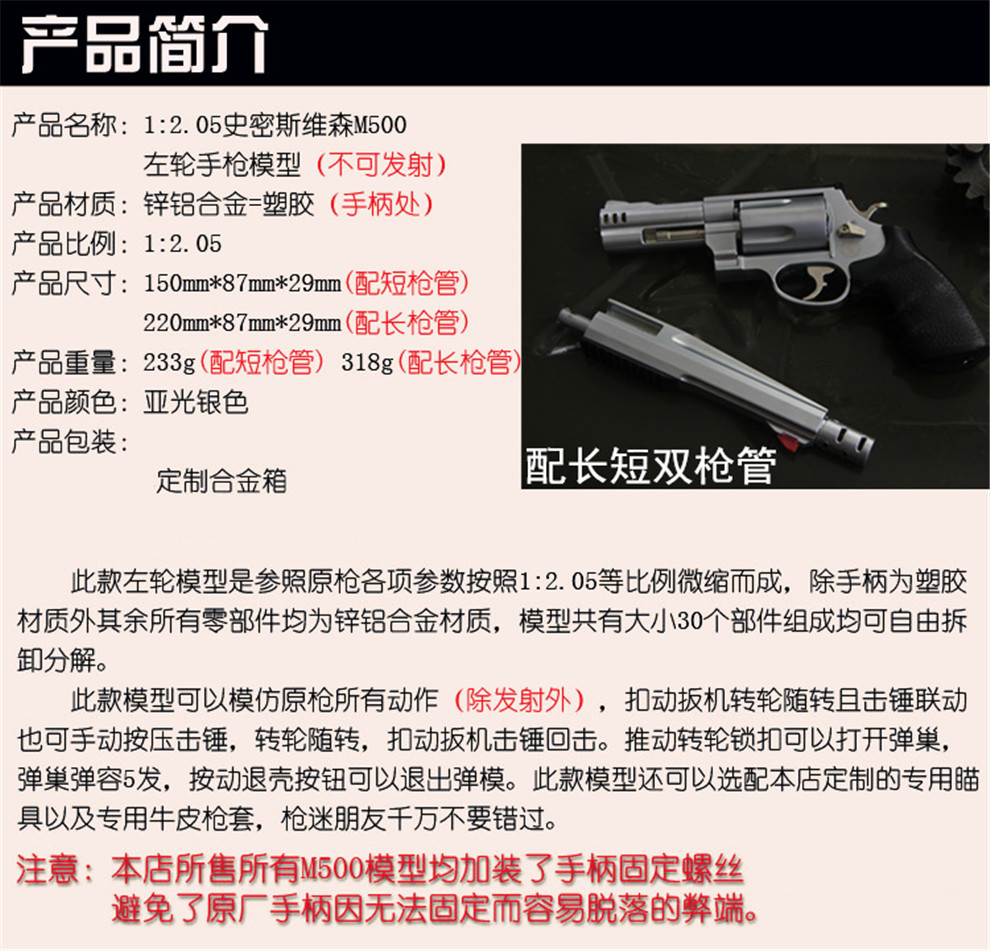 战术虎军事模型1:2.05史密斯维森M500式左轮模型收藏品军事全金属玩具军迷模型摆件不可发射