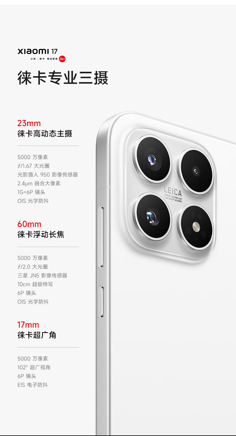 小米(MI)小米17 手机5G新品上市 冰融蓝 12GB+512GB 官方标配