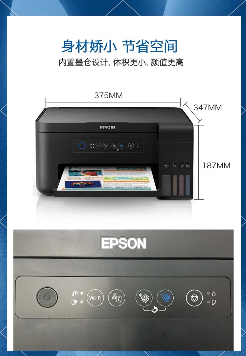 爱普生(EPSON)L130L310L351L380L360L3118L3119L3153L3251L3256L3258彩色喷墨复印扫描学生复合打印机家用办公 L455/485扫描复印WiFi直连打印