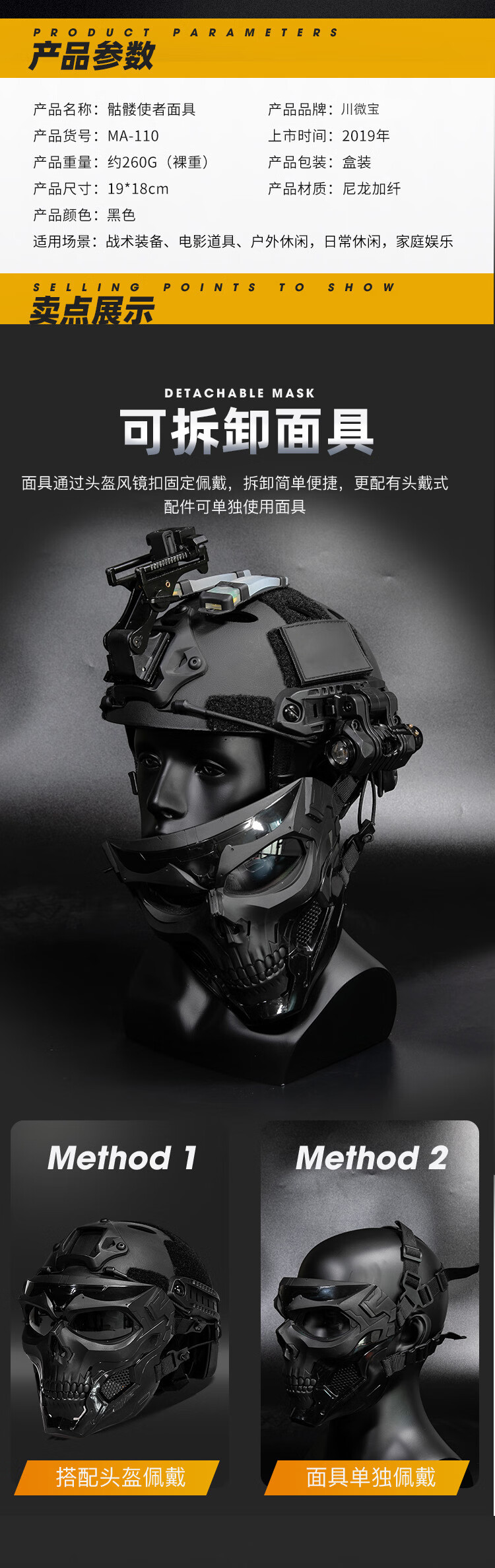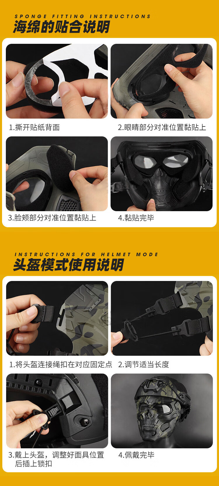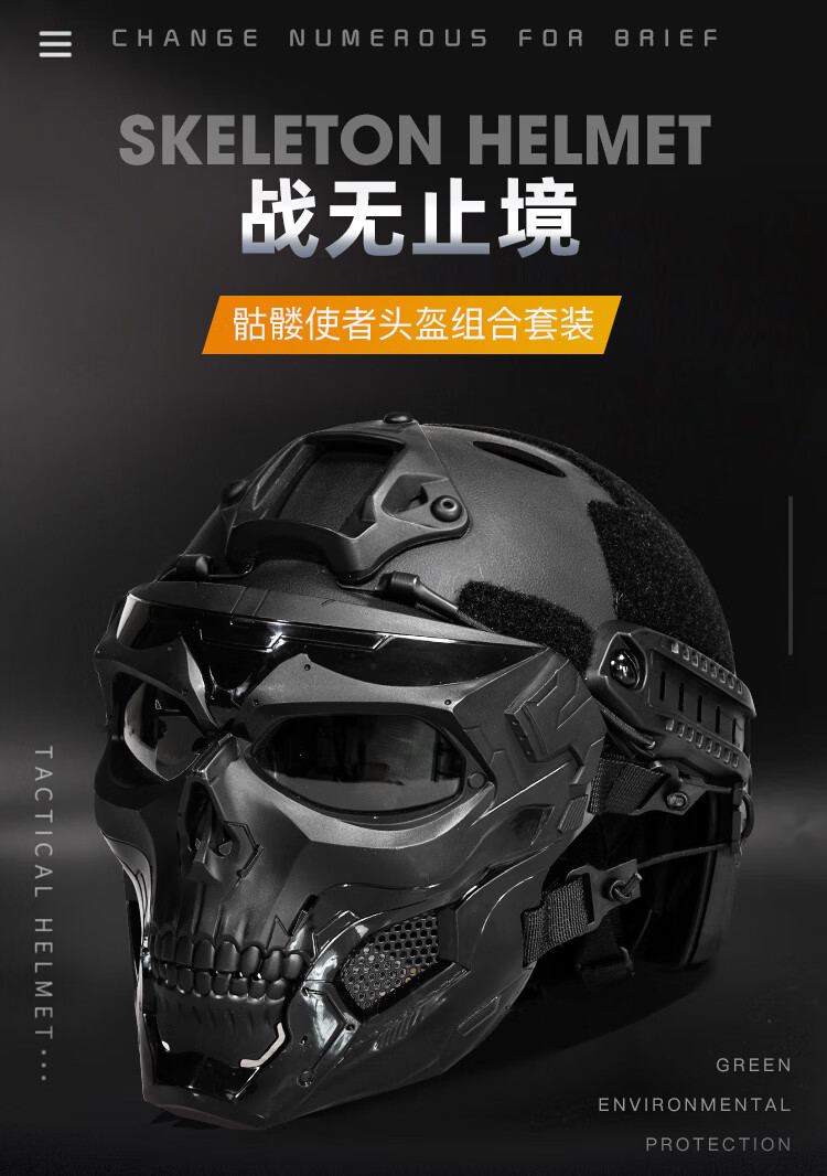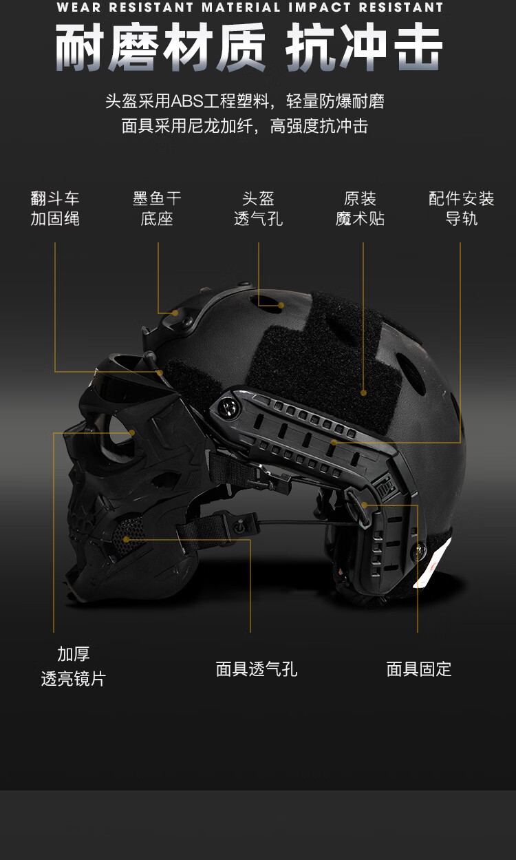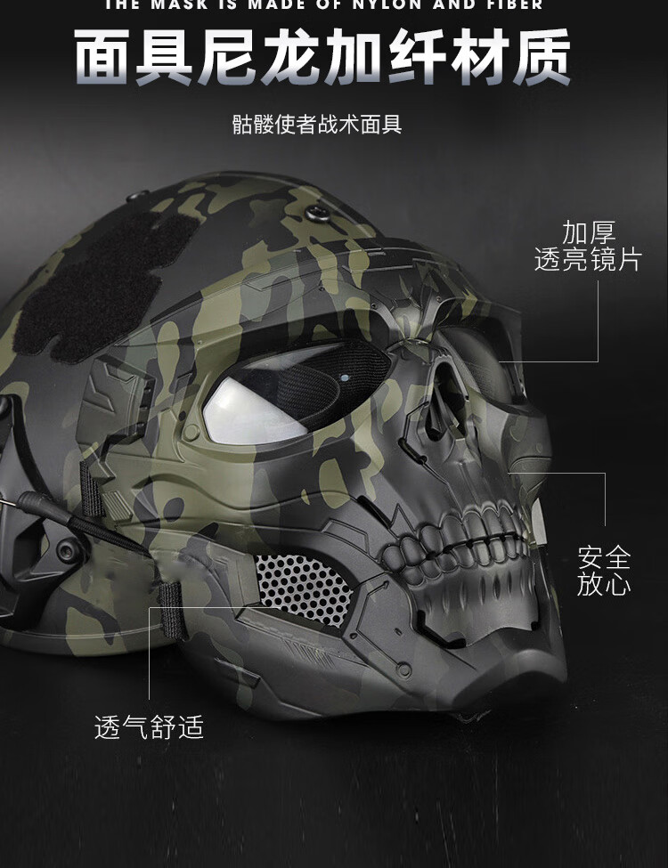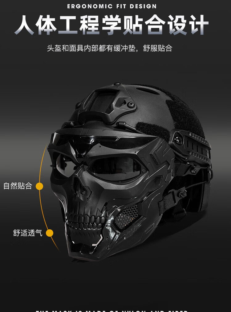 骷髅面具适配FAST头盔军迷cosplay战术装备全脸防护面罩 面具(默认黑镜片)+头盔+翻斗车