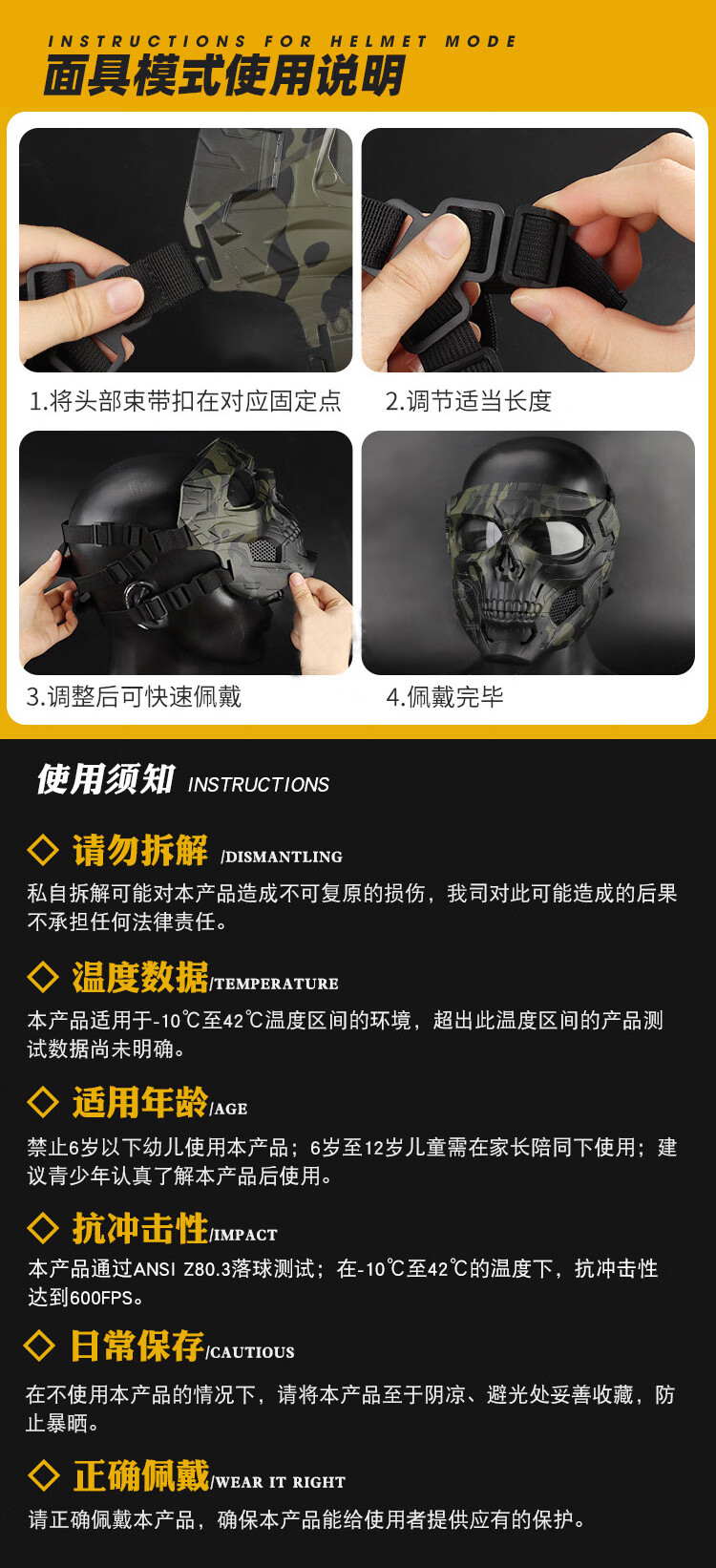 超酷全脸战术面罩护目镜,强效抗冲击,户外运动神器 黑框透明片