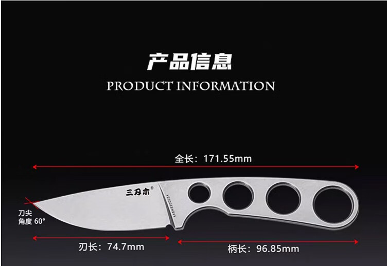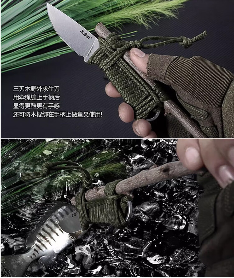 三刃木户外刀便携高硬度一体龙骨开刃锋利潜水鱼刀生存冷兵器 直刀 7130FUF-SF银色