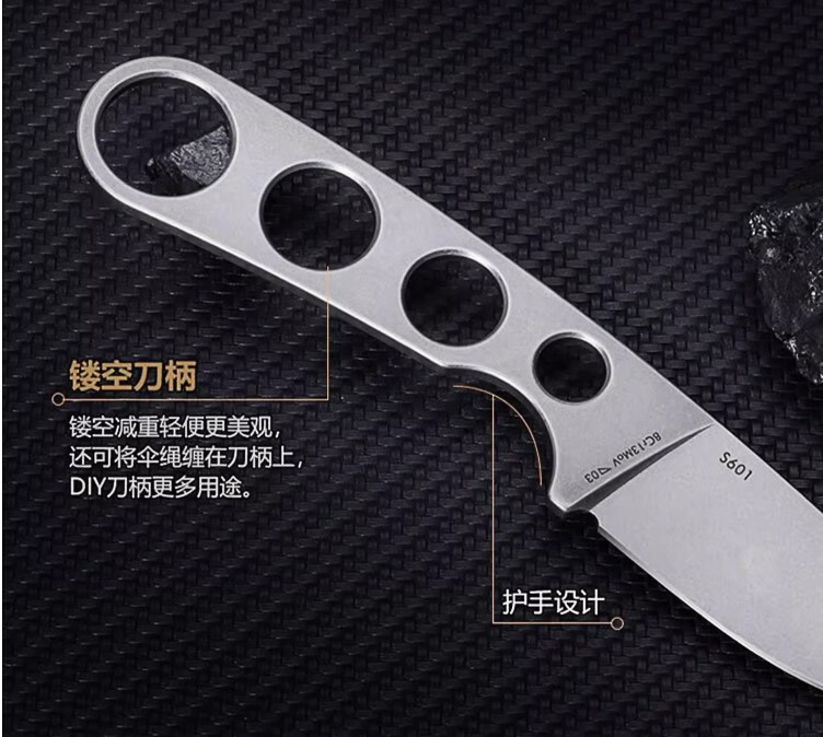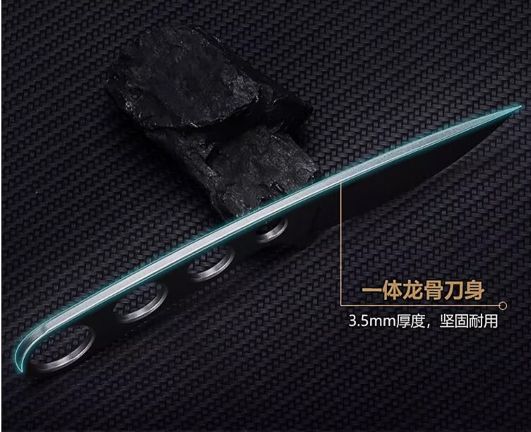 三刃木S738户外直刀野外生存刀长款一体刀具防身露营野营刀把肉刀 S738-1发黑石洗黑色