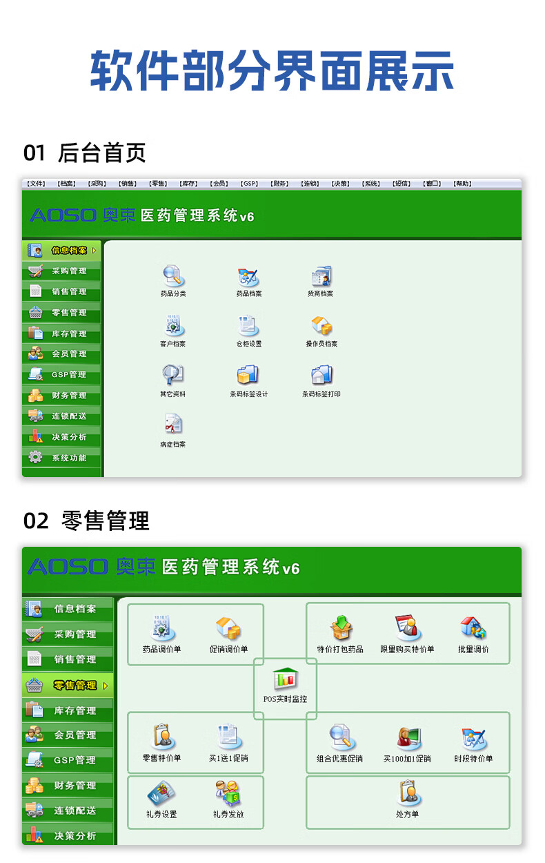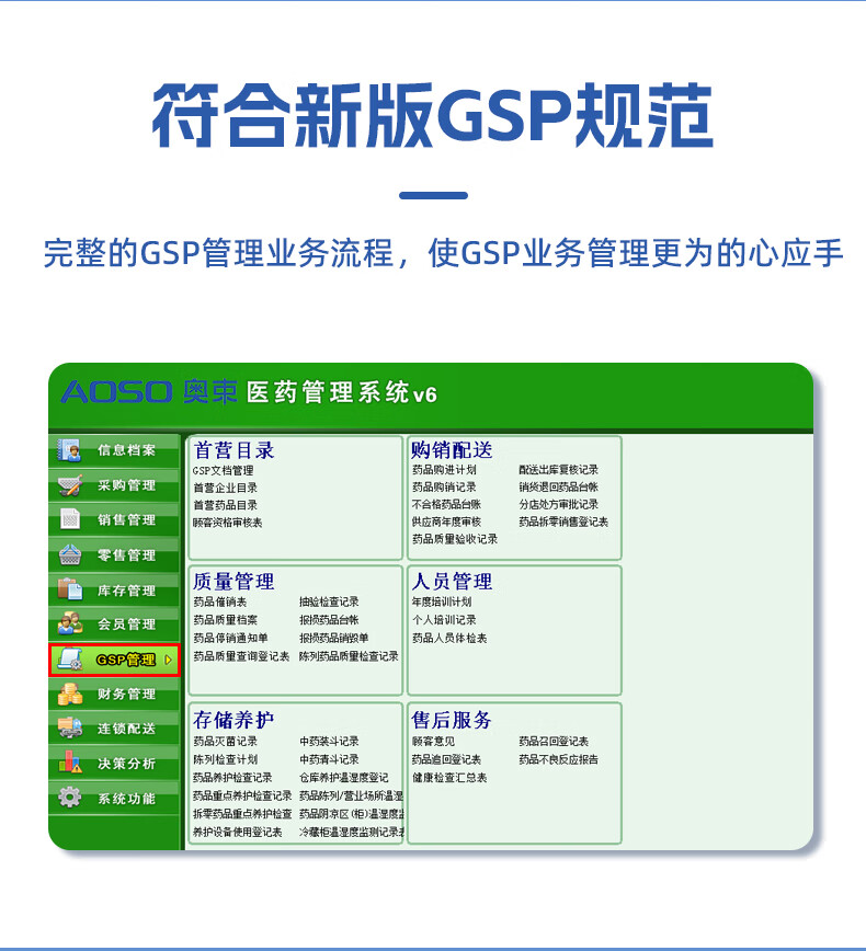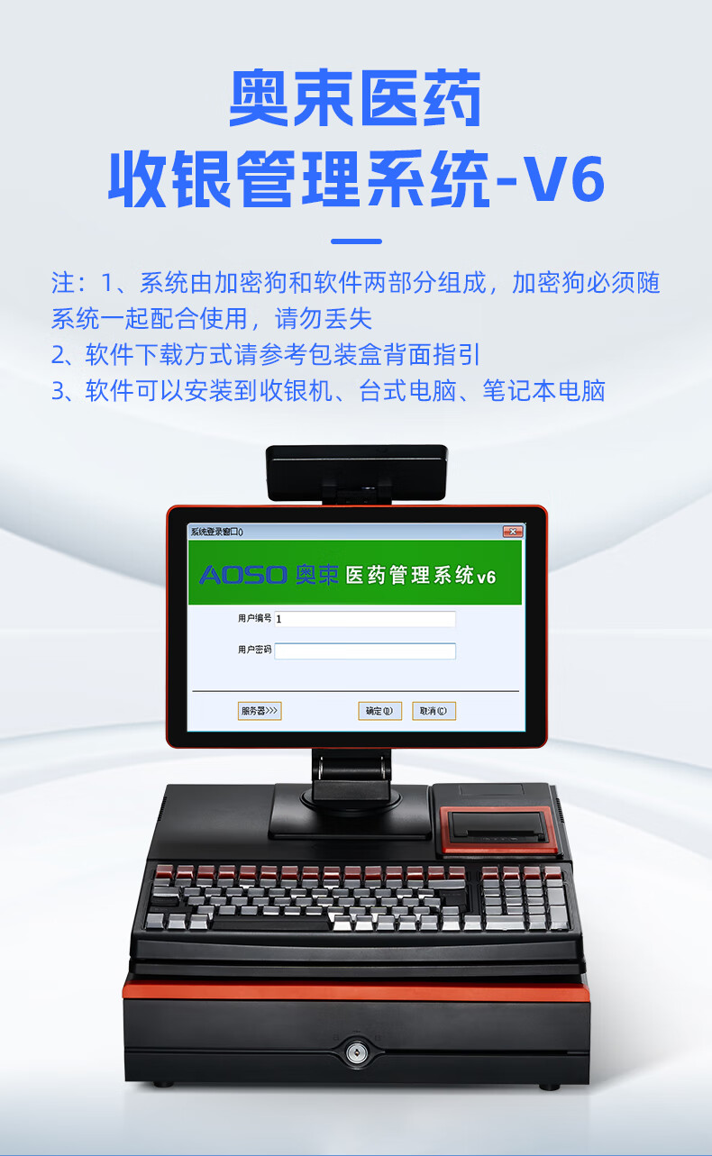奥束医药收银软件 药店药房管理系统v6 药监局GSP仓库进销存管理系统可连锁 处方医保会员管理V5 医药v6【可过gsp】