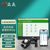 众焱医药收银软件 连锁药店药房药监GSP进销存管理系统一体机收银软件药店收银软件系统 医药V6+扫描枪+小票打印机