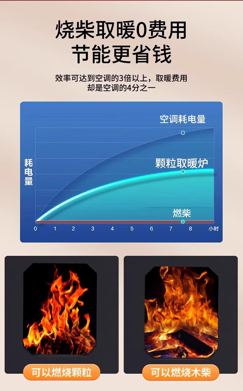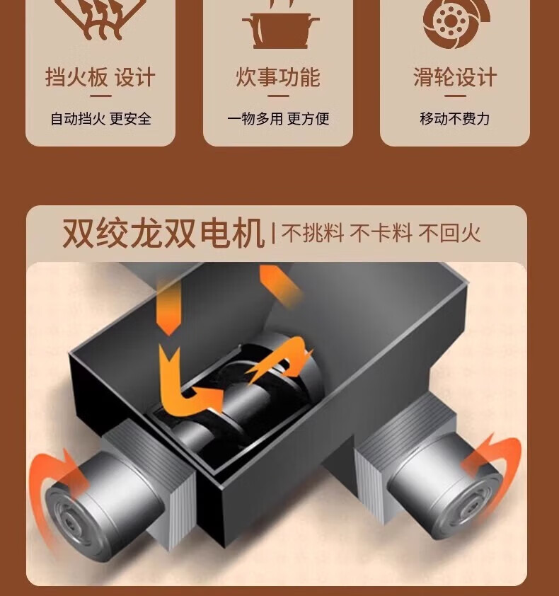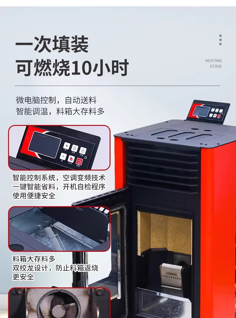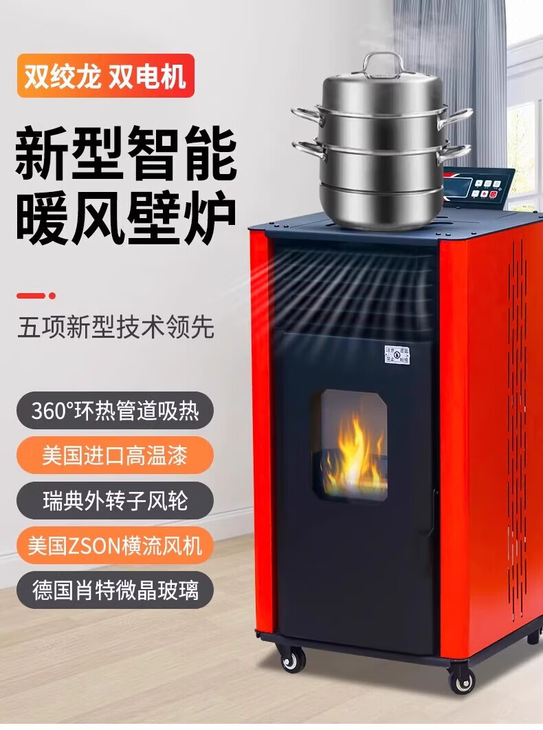 丰强鸿新型颗粒取暖炉全自动生物质燃料柴火家用室内供暖环保无烟水暖 【炊事烧烤+颗粒木柴两用款】60双绞龙双电机