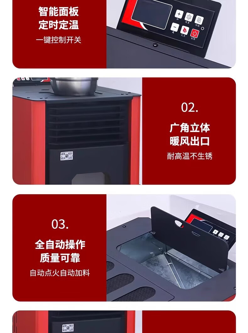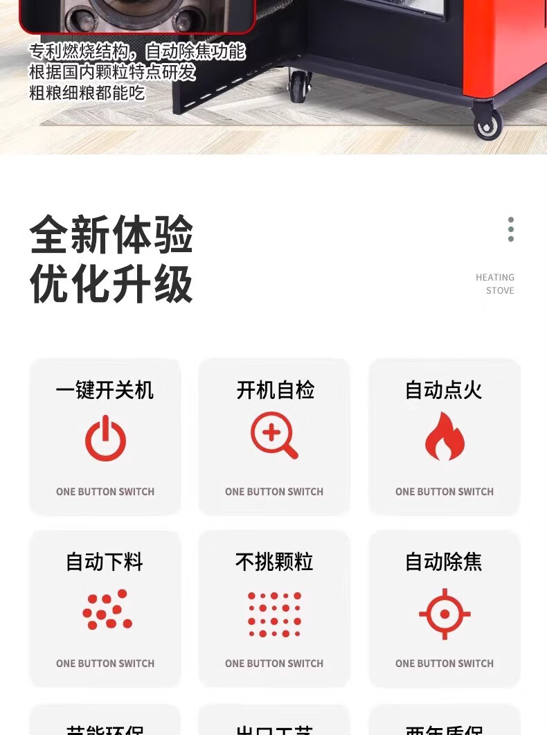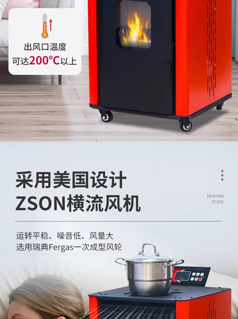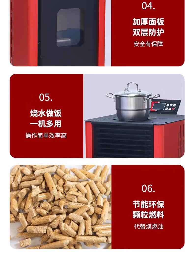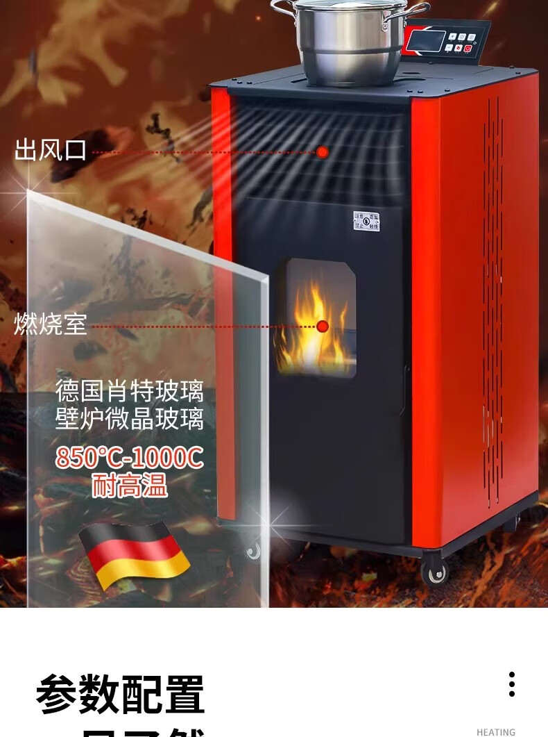 丰强鸿新型颗粒取暖炉全自动生物质燃料柴火家用室内供暖环保无烟水暖 【炊事烧烤+颗粒木柴两用款】60双绞龙双电机