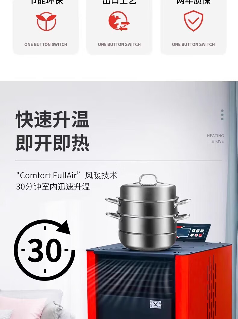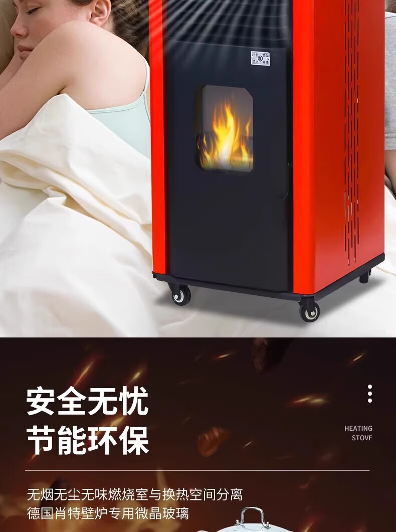暖小将1生物质颗粒取暖炉家用室内环保燃料炉智能全自动无烟采暖烤火炉 顶配S60型+WIFI颗粒/木柴两用