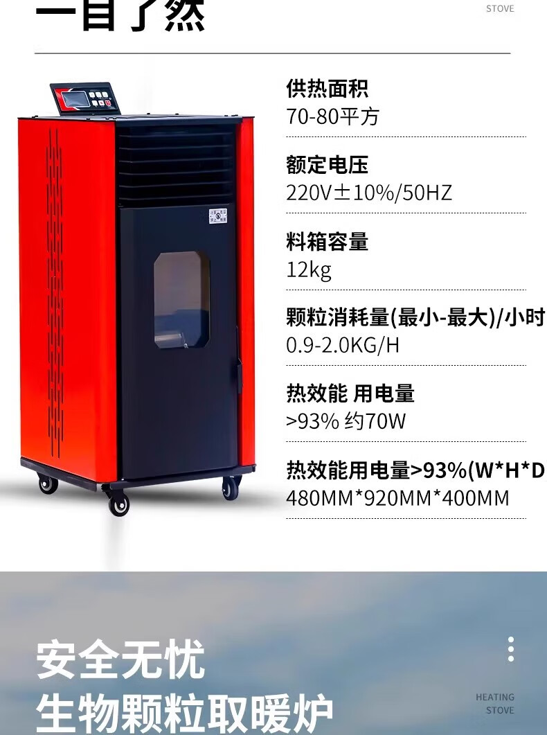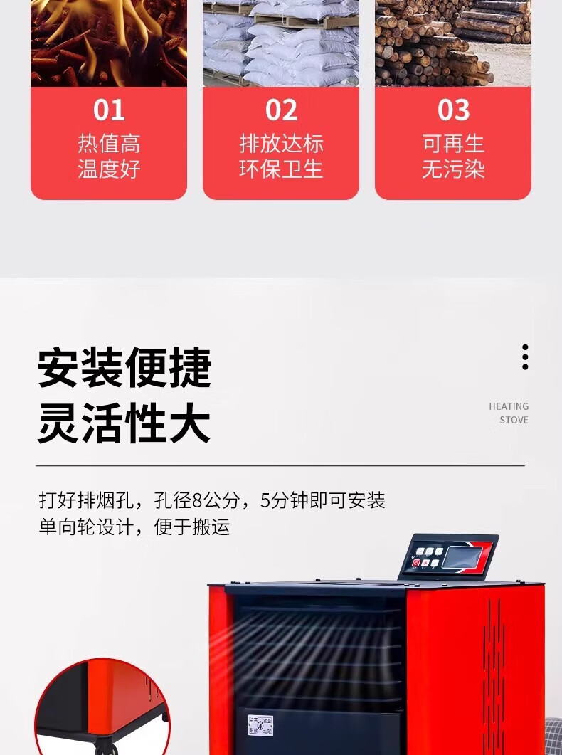 奉希【送货上门】全自动生物质颗粒取暖炉家用室内无烟节能环保 柴/颗粒-两用80型 不可烧水款