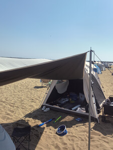 质感:做工很好,也很有质感,这个价格来讲,还是很划算的! 大小:帐篷里面很大,天幕支开也很大,阴凉地方可以坐四个大人,家庭使用很合适! 便捷性:帐篷收缩方便! 遮阳性:遮阳性很好,很适合海边!