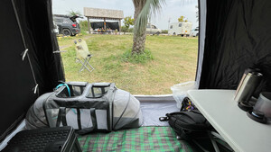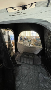 在营地试用了,方便安装和收纳,质量不错,密封性好。我把所有拉链都拉紧后,形成气球状,说明密封很好。收纳时要注意不能完全拉紧,要留一个小口,以便放气。