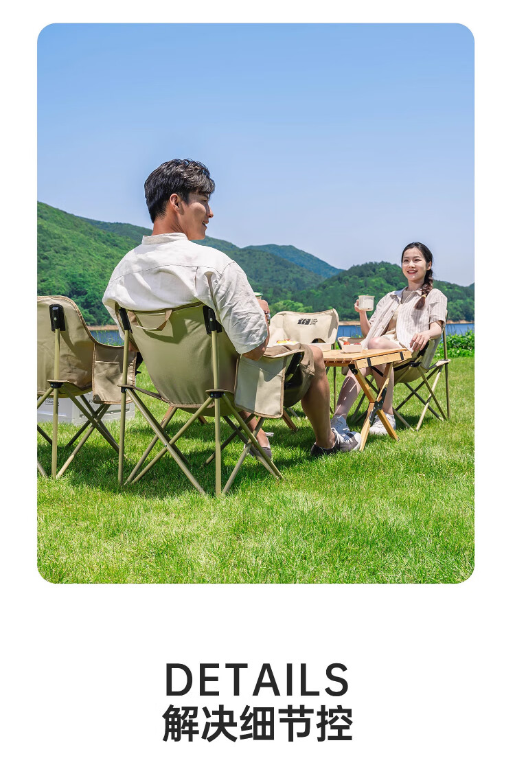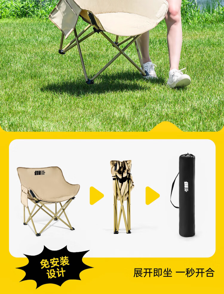 探险者(TAN XIAN ZHE)户外折叠椅露营椅子便携钓鱼凳子休闲月亮椅凳沙难椅野餐桌椅 【超值两件装】米白+管套加固