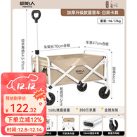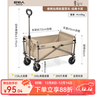 原始人露营推车营地拖车户外折叠旅行手推野餐小推车野营遛娃快递手拉车 150L 加厚款卡其【静音万向轮】