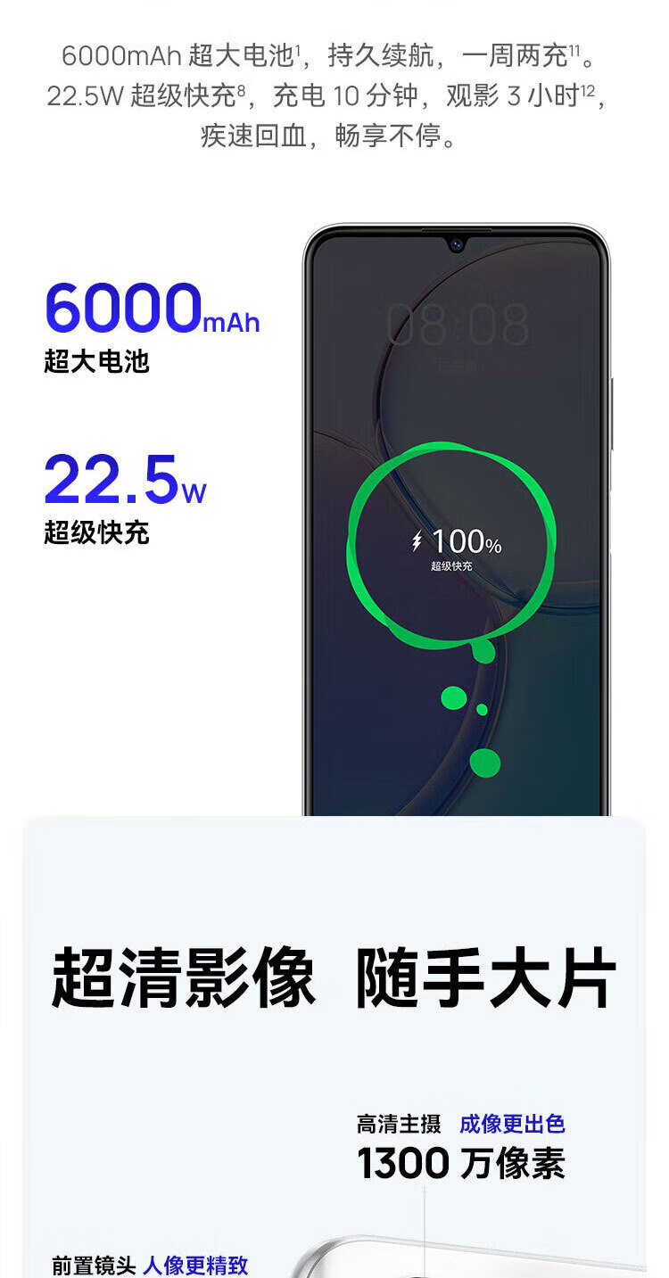 华为智选 WIKO Hi畅享60S 5G鸿蒙生态 6000mAh大电池【全新】22.5W快充 天玑700芯 4800万影像 手机 雪域白 8GB+256GB【晒单送蓝牙耳机】 官方标配