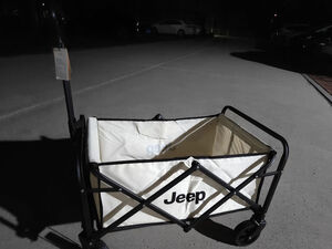 JEEP吉普露营推车可折叠户外手推野餐车营地拖车拉杆小拉车野营车 100L橡胶轮【可折叠】米色