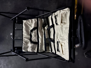 买回来还没有使用,这个算是一个多功能的,既可以当车子用上面,也可以当一个桌子。对于像我们这种不怎么经常出去玩的人来说,嗯,有一个简易的桌子也挺好