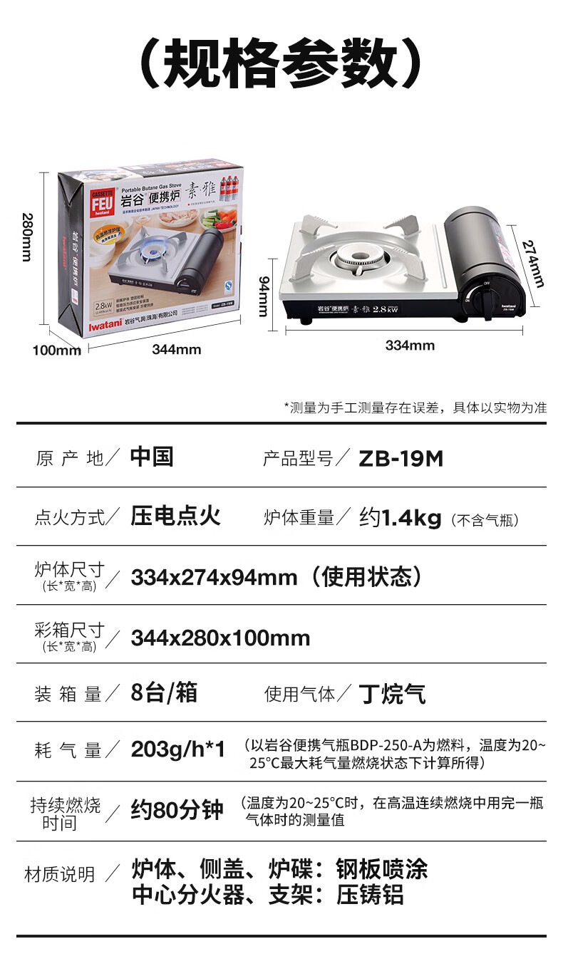 岩谷(Iwatani)户外便携卡式炉套装露营卡磁炉具两用省气防爆烧烤燃气单灶卡斯炉 ZB-19M炉+收纳包