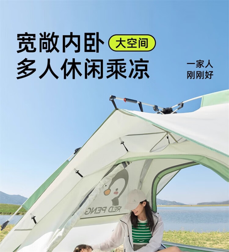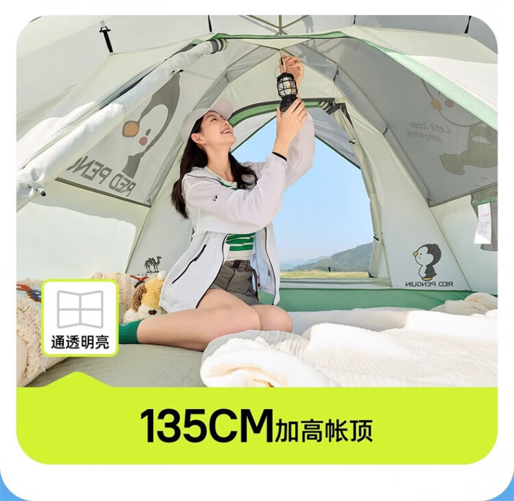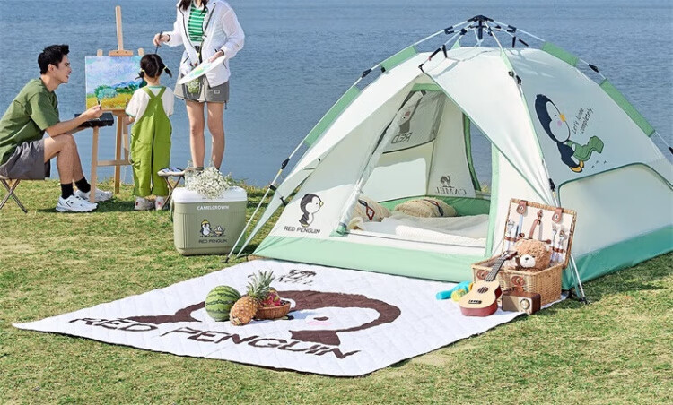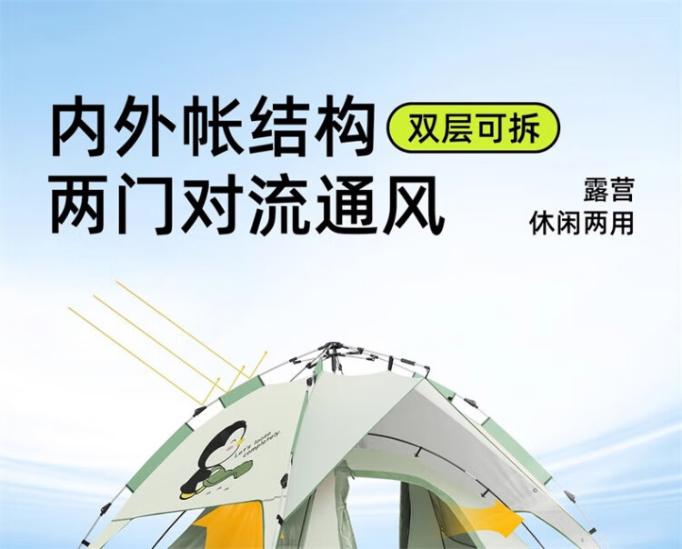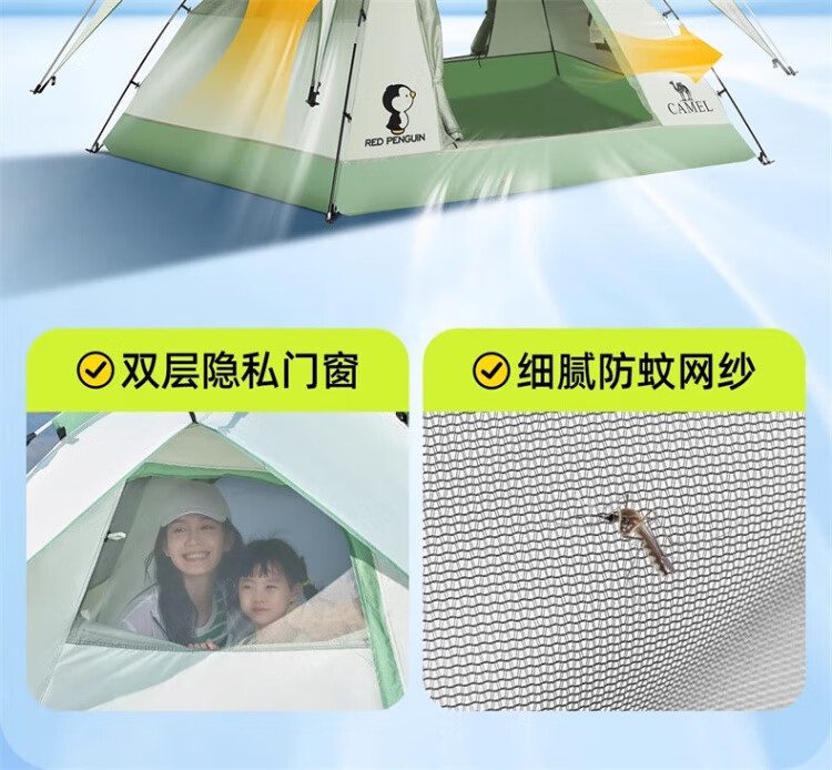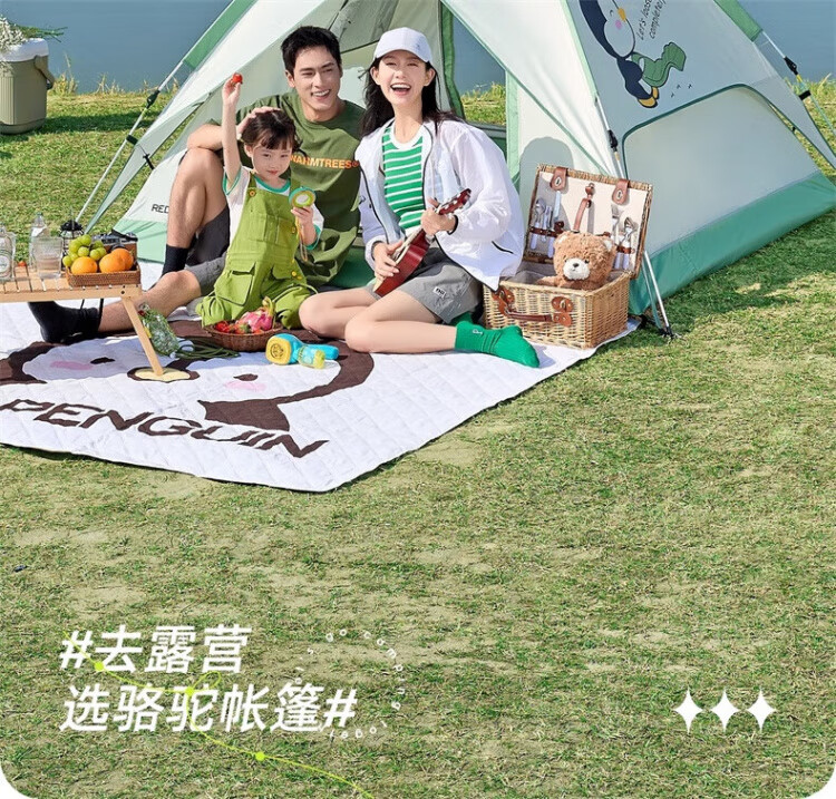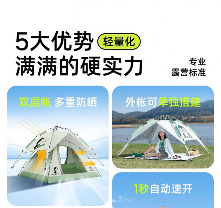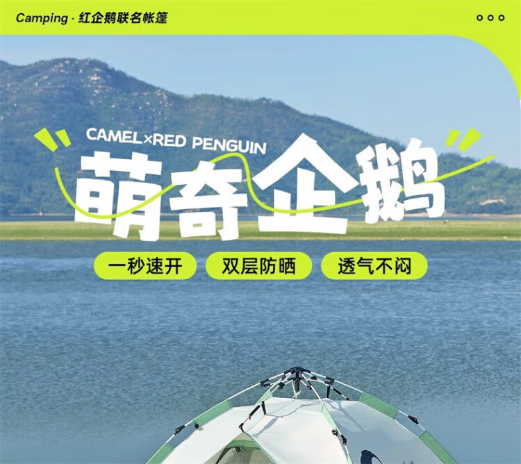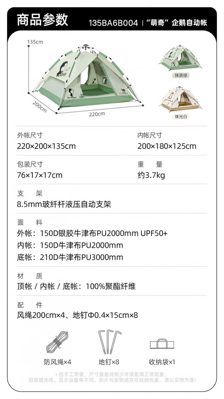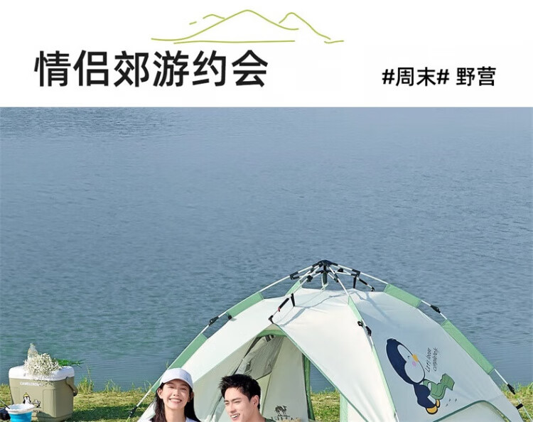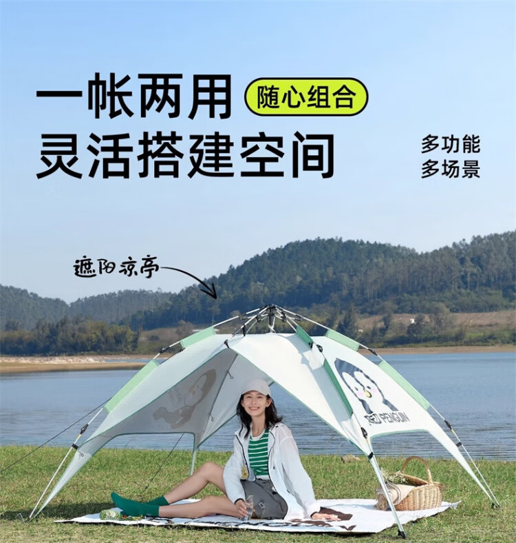 骆驼户外企鹅帐篷便携式折叠帐篷自动速开防雨防晒加厚野外露营 企鹅帐篷 珠光白 135BA6B004