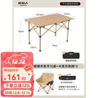 原始人(The Primitive)户外折叠桌椅便携蛋卷桌露营桌椅便携野餐桌子野营用品装备套装 木色【长桌】+月亮椅*2