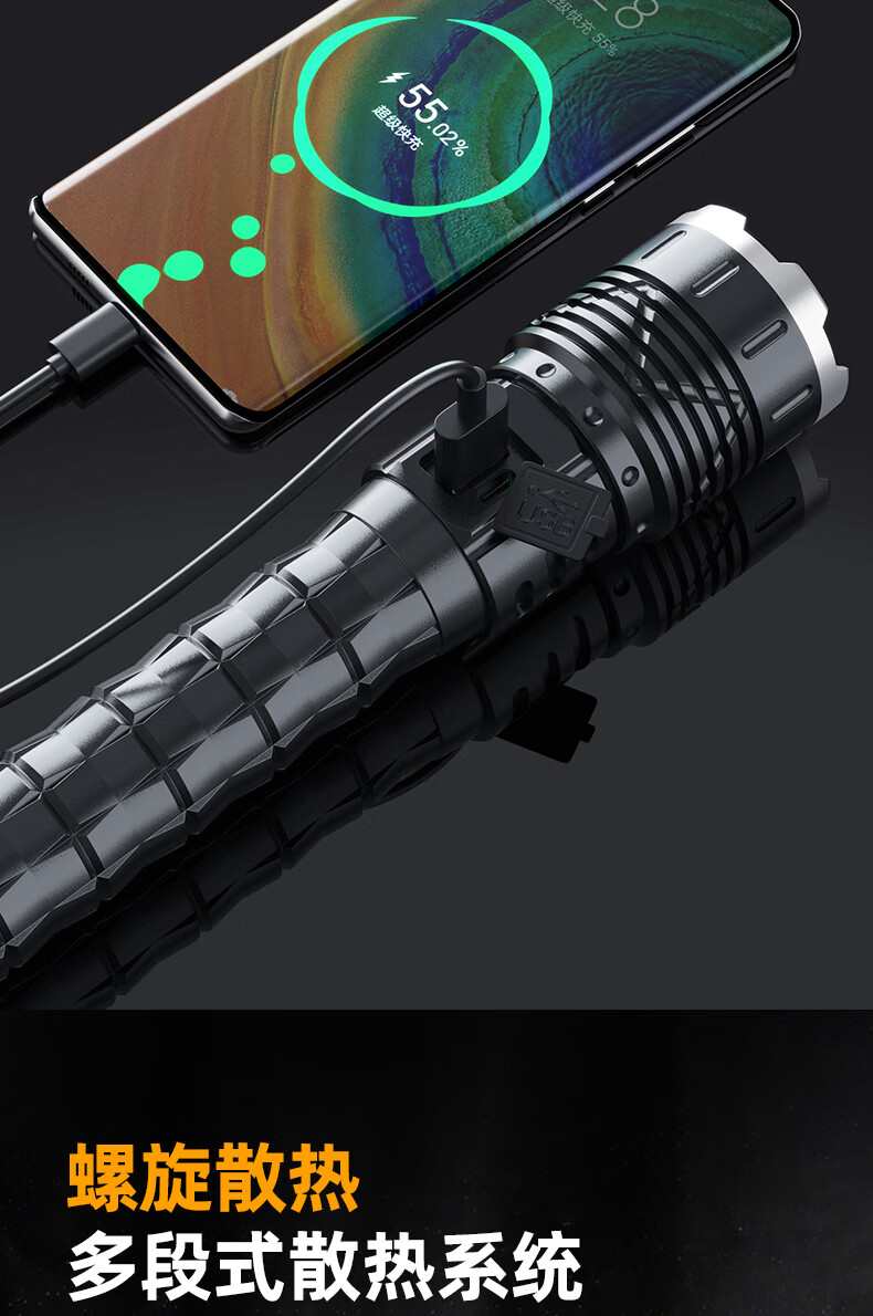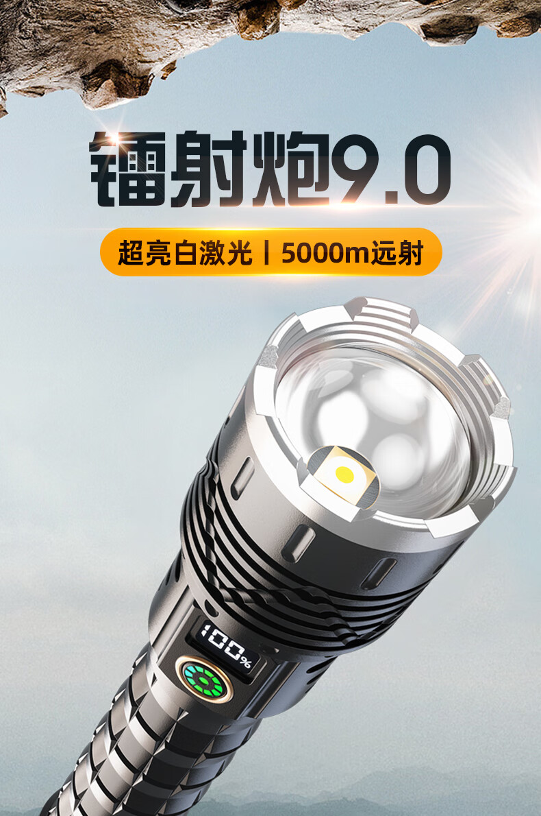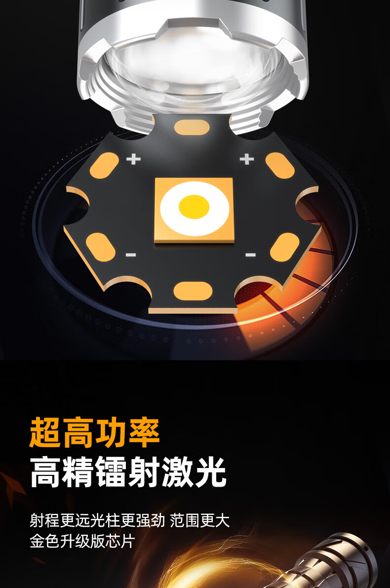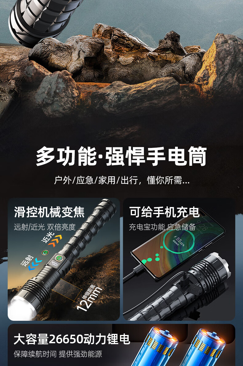 闪耀者户外P900强光手电筒便携充电超亮疝气灯变焦远射聚光LED灯 升级款【4节26650电池】 激光炮-伸缩变焦【高亮59800K】
