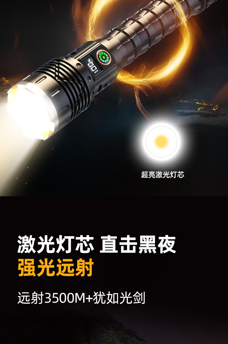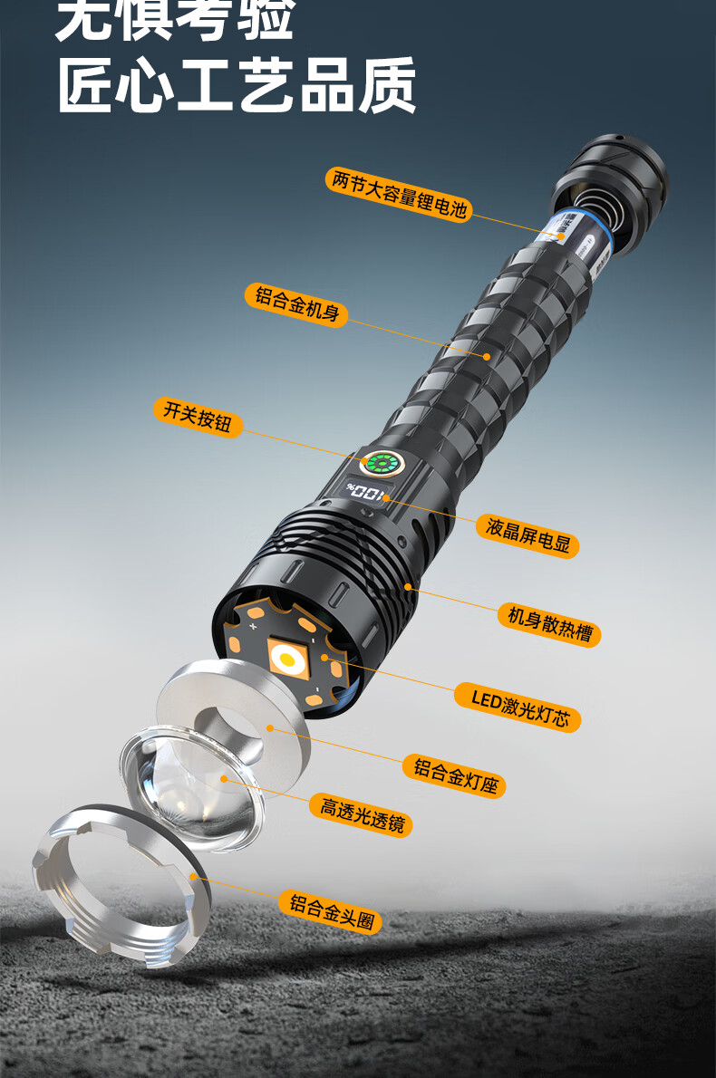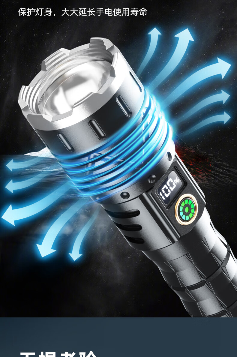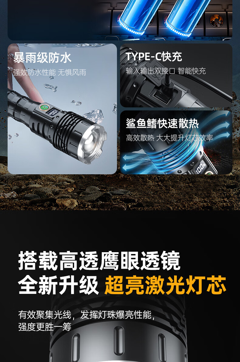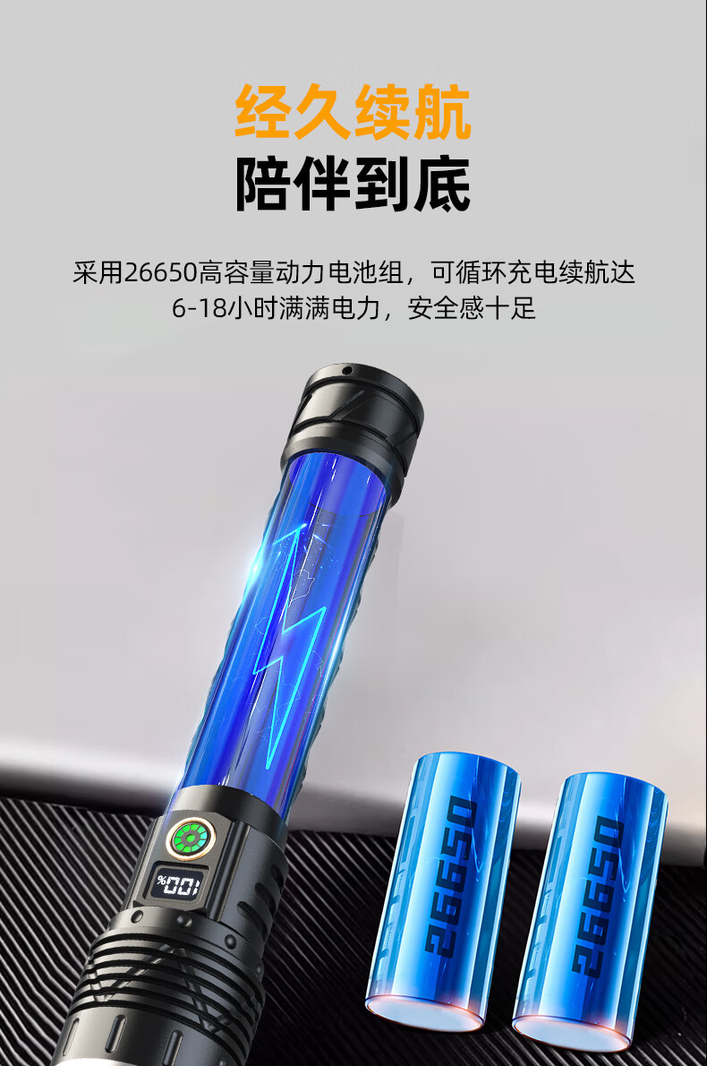 闪耀者户外P900强光手电筒便携充电超亮疝气灯变焦远射聚光LED灯 升级款【4节26650电池】 激光炮-伸缩变焦【高亮59800K】