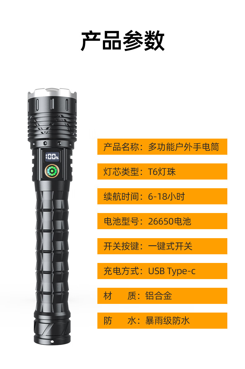 古慕妮金属小型便携式强光超长续航野外生存家用大功率户外爬登山 91A光灯芯-液晶电显-单锂电