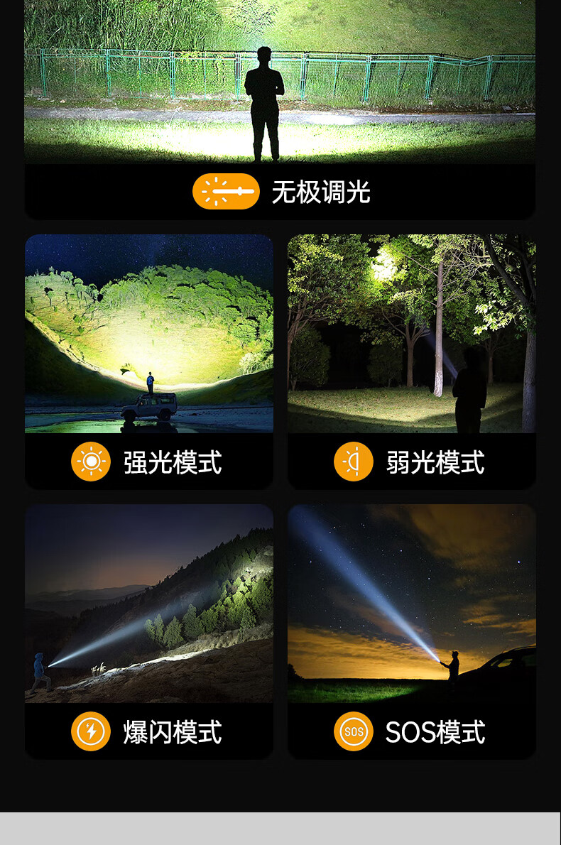 这款手电筒的聚光效果真的惊艳,晚上露营时亮度足够,续航也很给力。操作简单,携带方便,户外活动必备。性价比高!