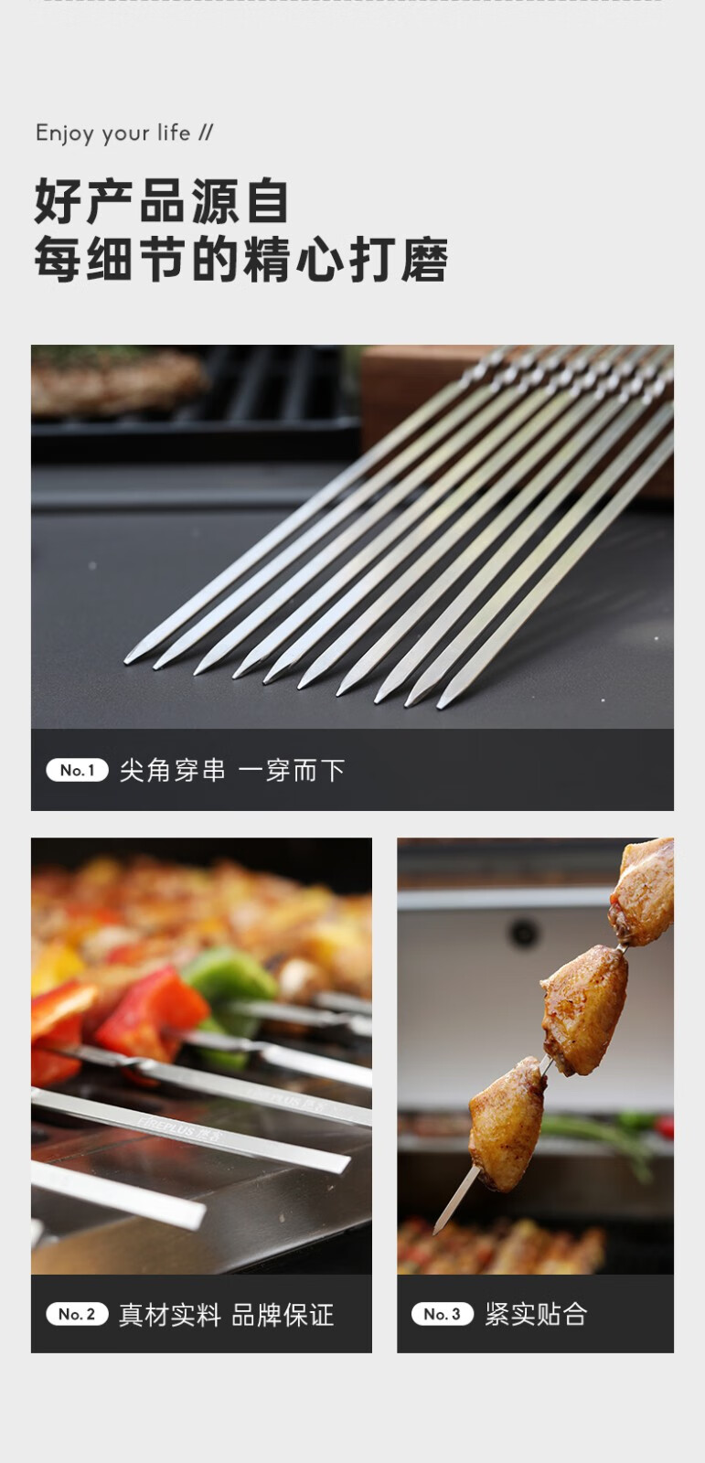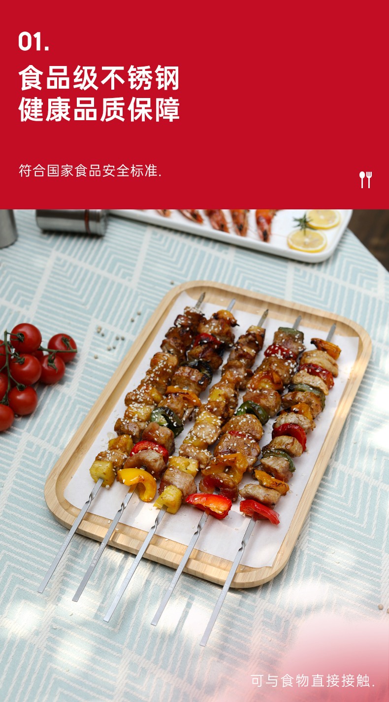 用料材质:不锈钢,待验证 室内室外:户外为主 重量大小:分量足 便携性能:很便携 适用人数:10根,3-5个人用够了
