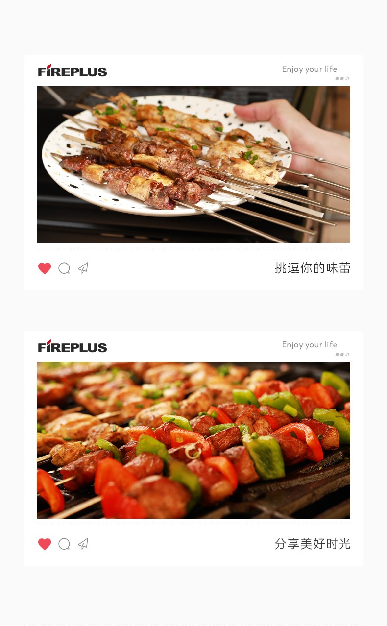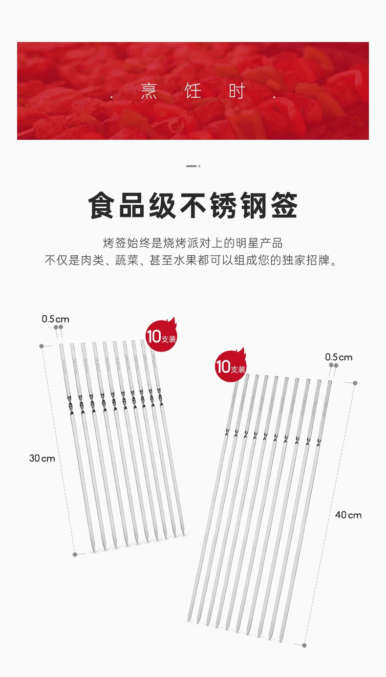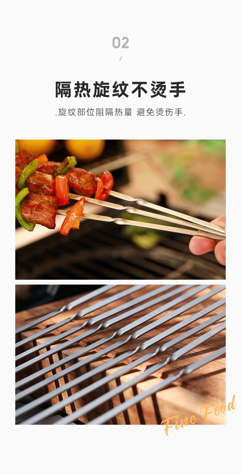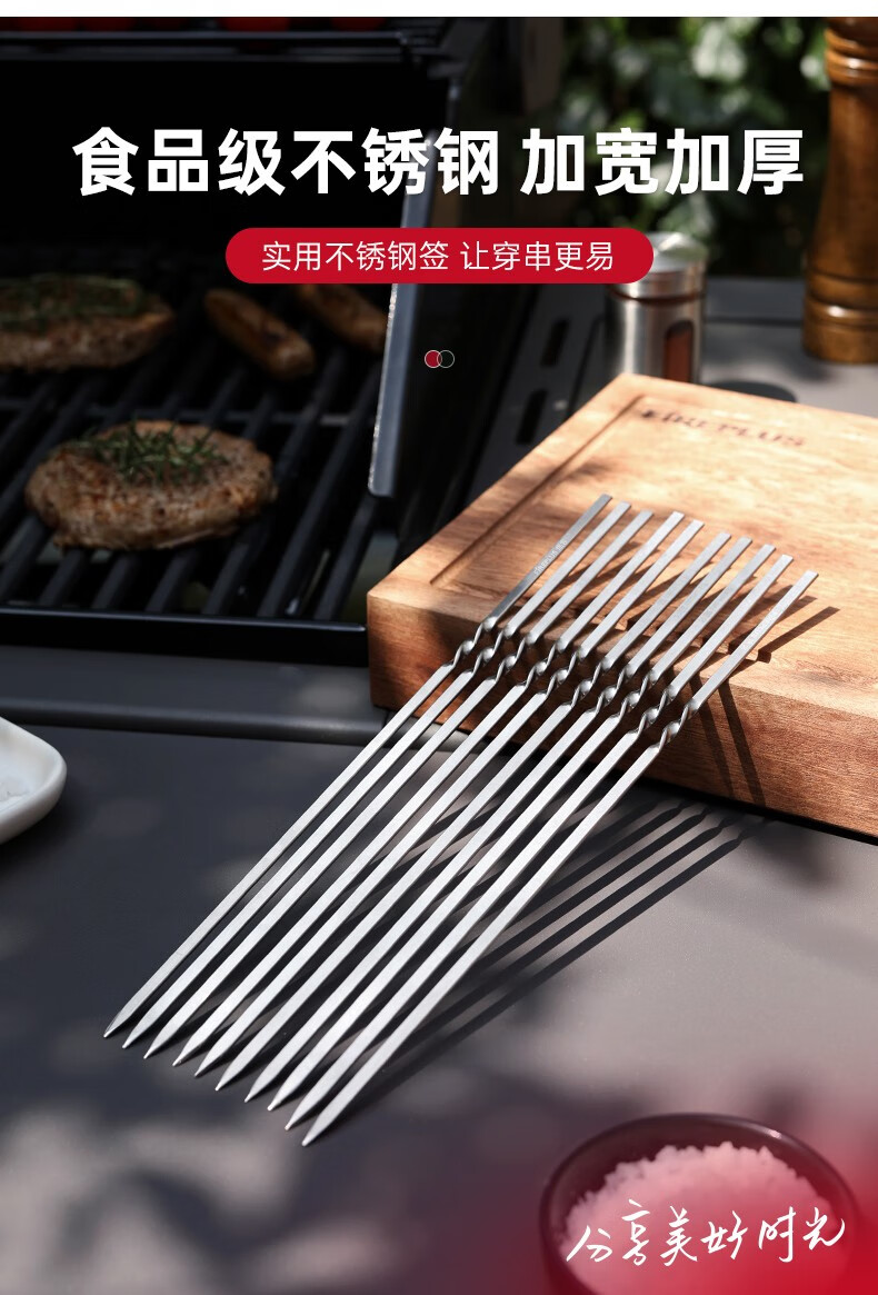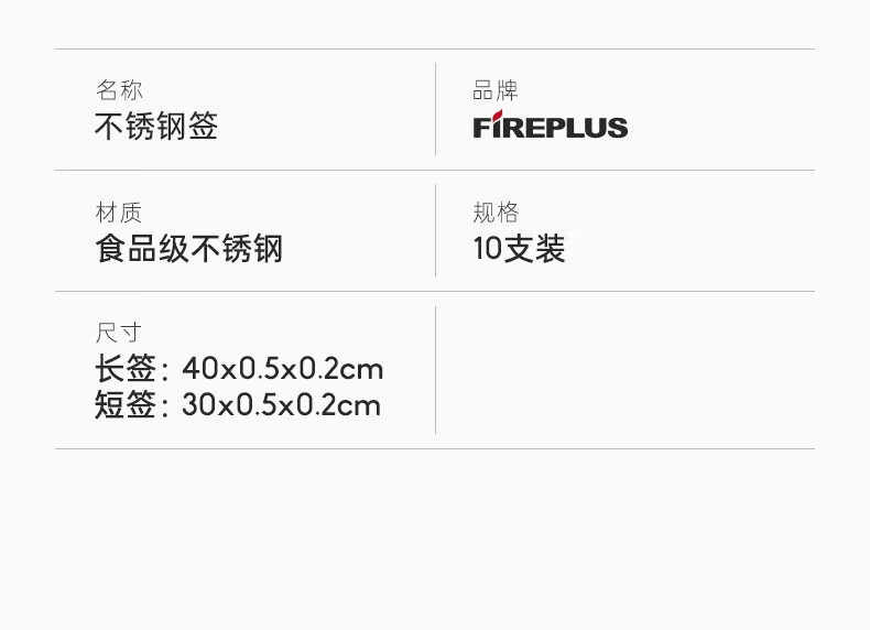 FIREPLUS 不锈钢烧烤签 铁签子羊肉串烤串签子 耐高温加厚烧烤工具 10支 长度:30cm