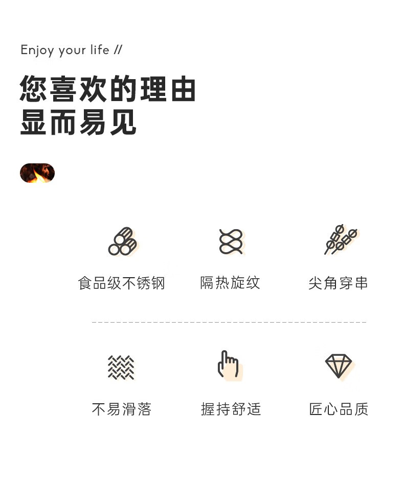 签子要先洗一洗,烧一烧,但要注意末端处没打磨,容易伤手。签子隔热效果很好,不用担心烫手,分量很足,优秀!