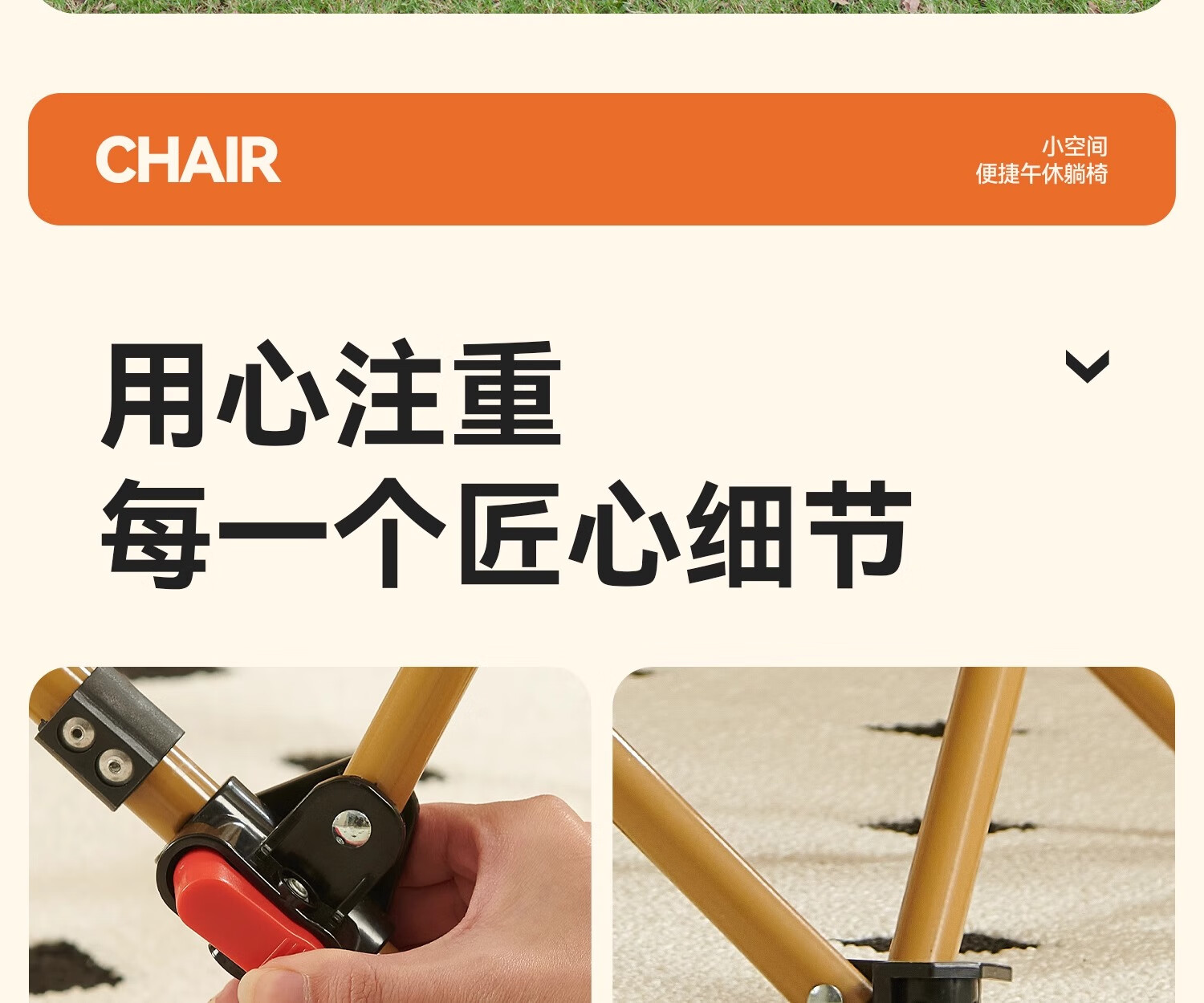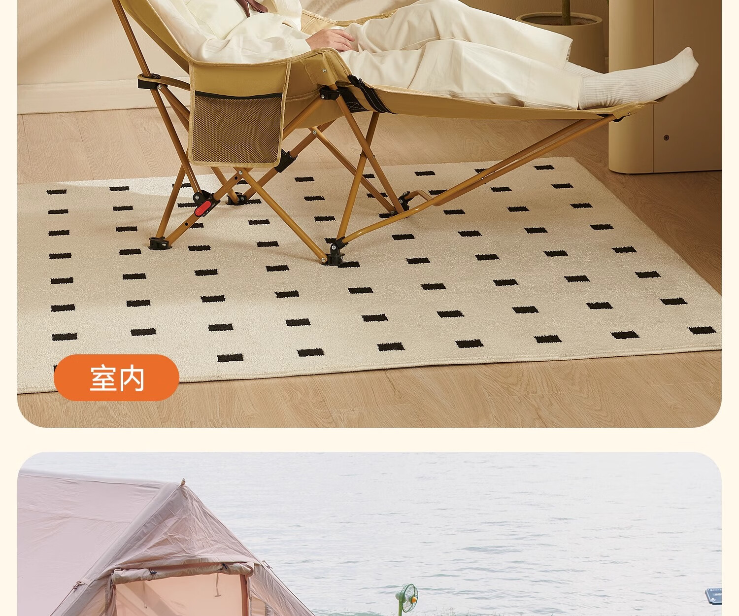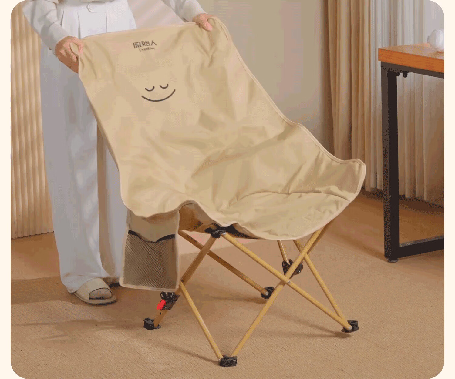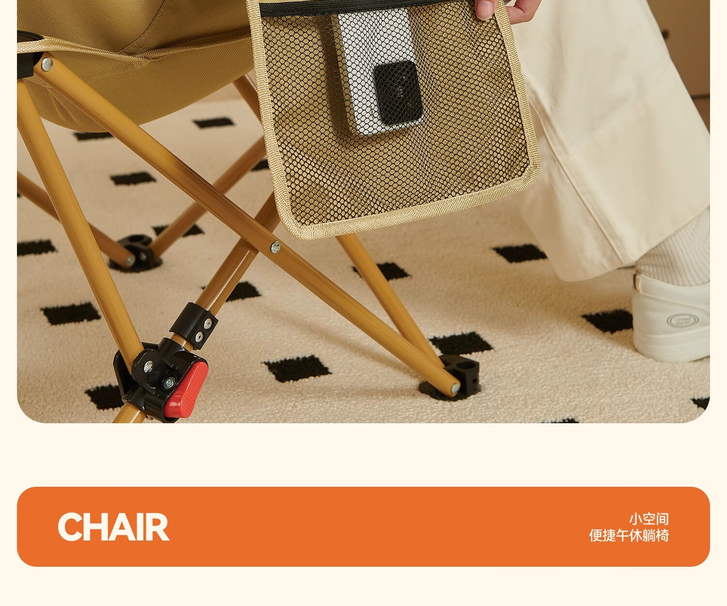 在公园看到露营的人们使用原始人的躺椅,试过感觉这体验感不错,就立马下单,结实稳固,有质感,包裹性强,躺下去170身高也够长,边上网兜袋一个方便放手机等物件,收纳也轻松,值得推荐