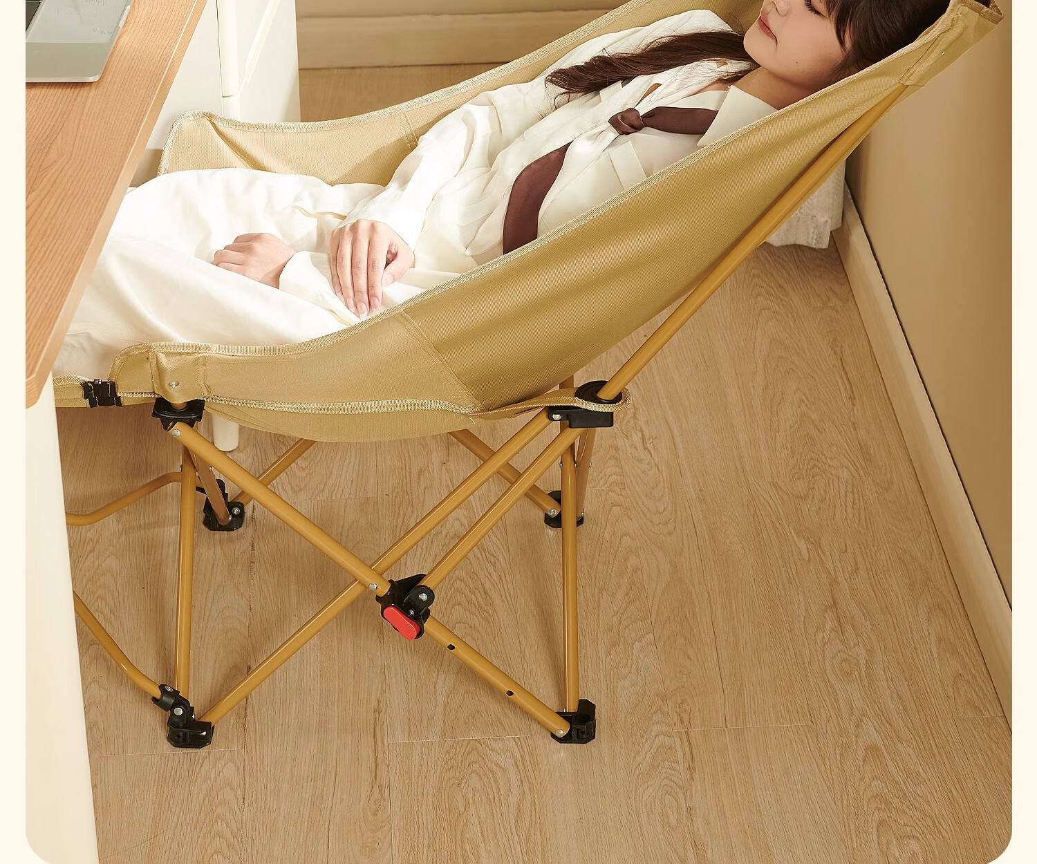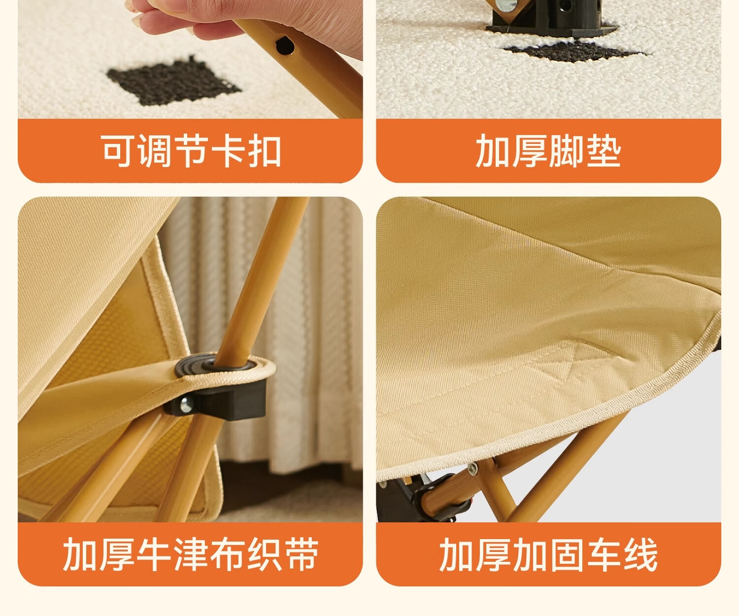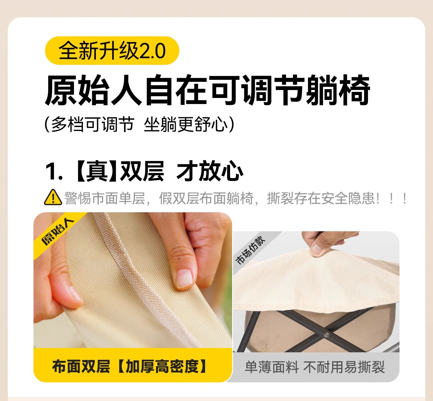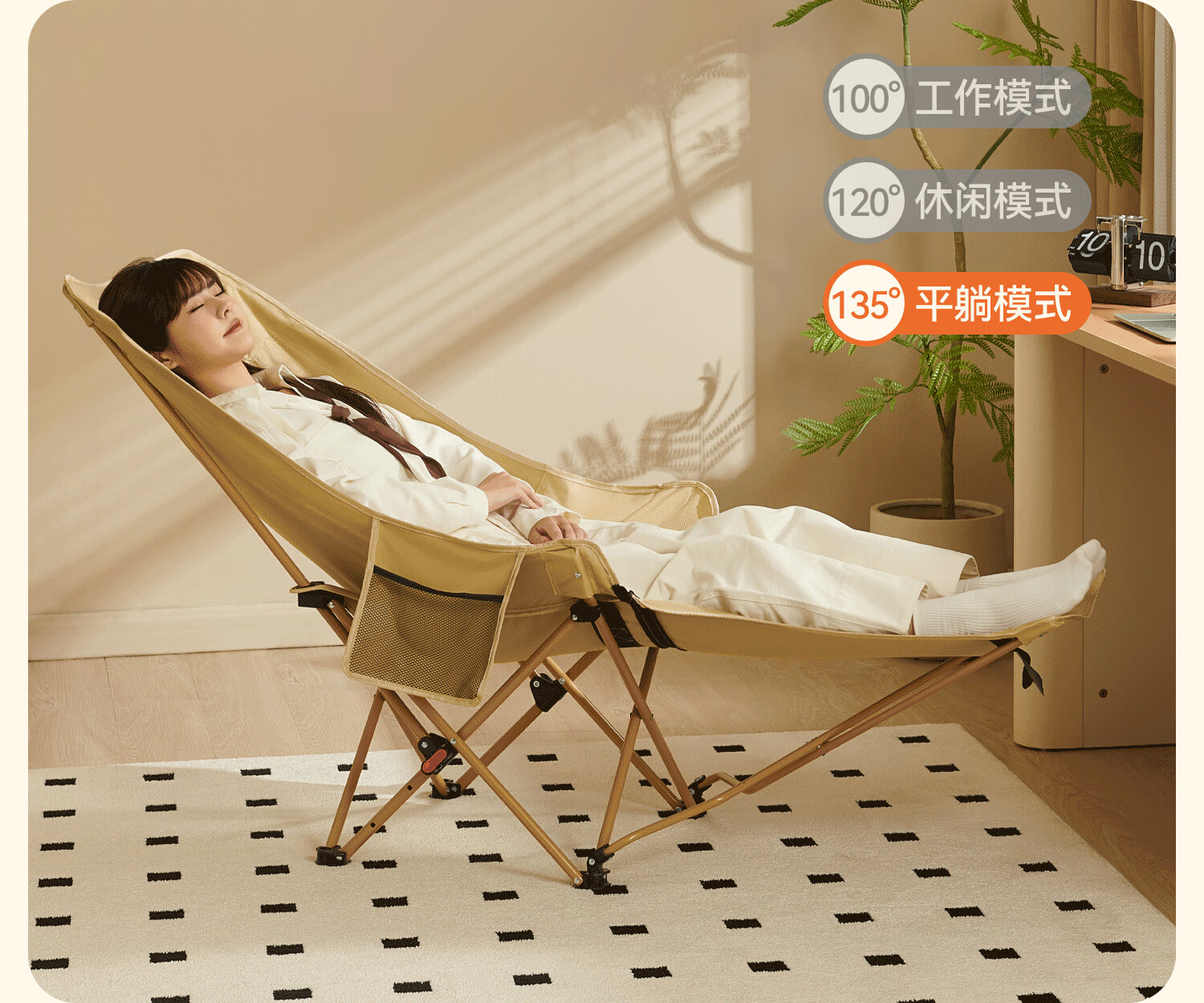 原始人月亮椅户外便携躺椅可折叠办公室午休床新款坐睡两用家用靠背椅子 卡其色加高款-三档调节