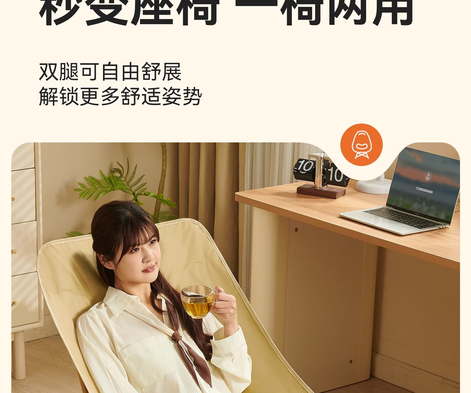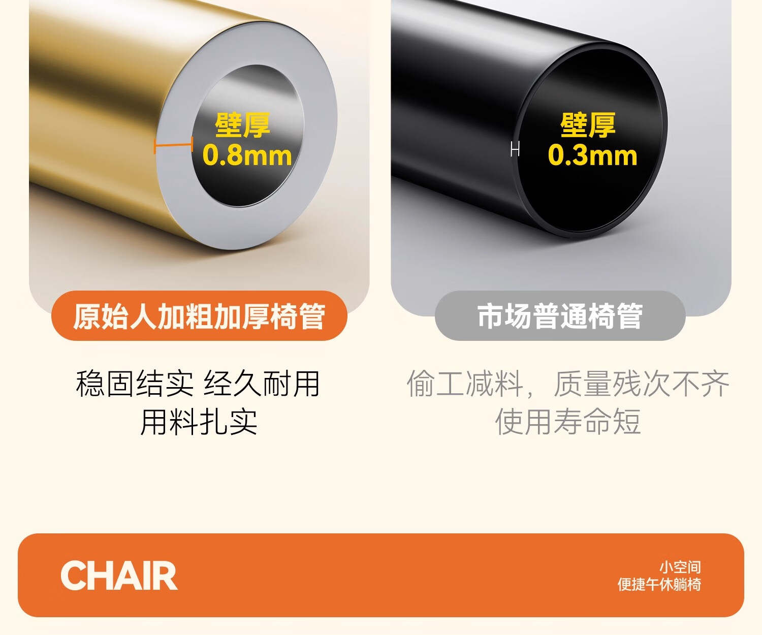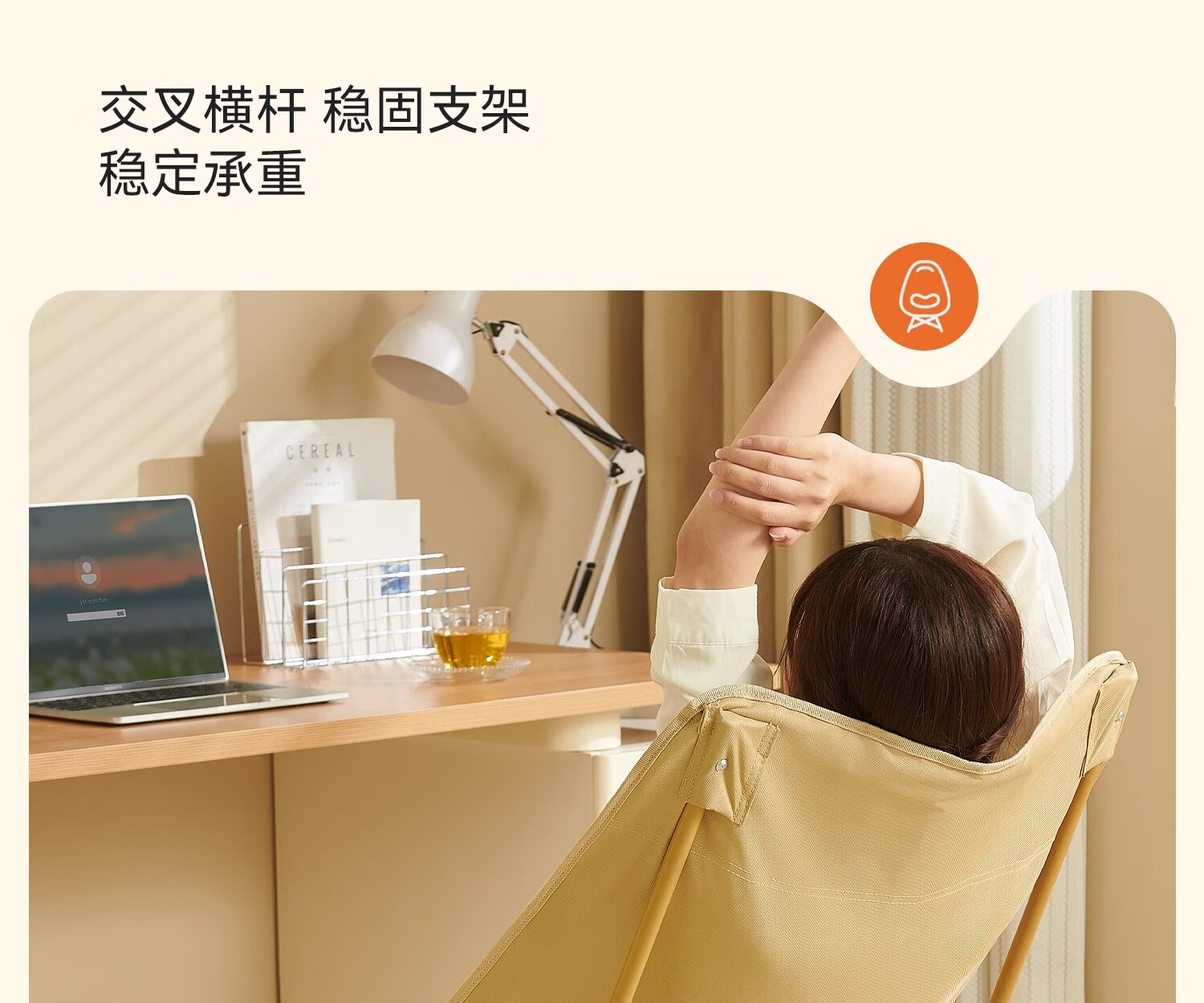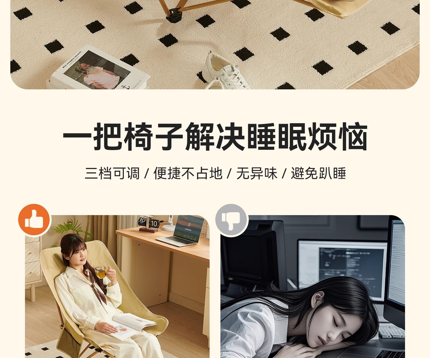 原始人月亮椅户外便携躺椅可折叠办公室午休床新款坐睡两用家用靠背椅子 卡其色加高款-三档调节
