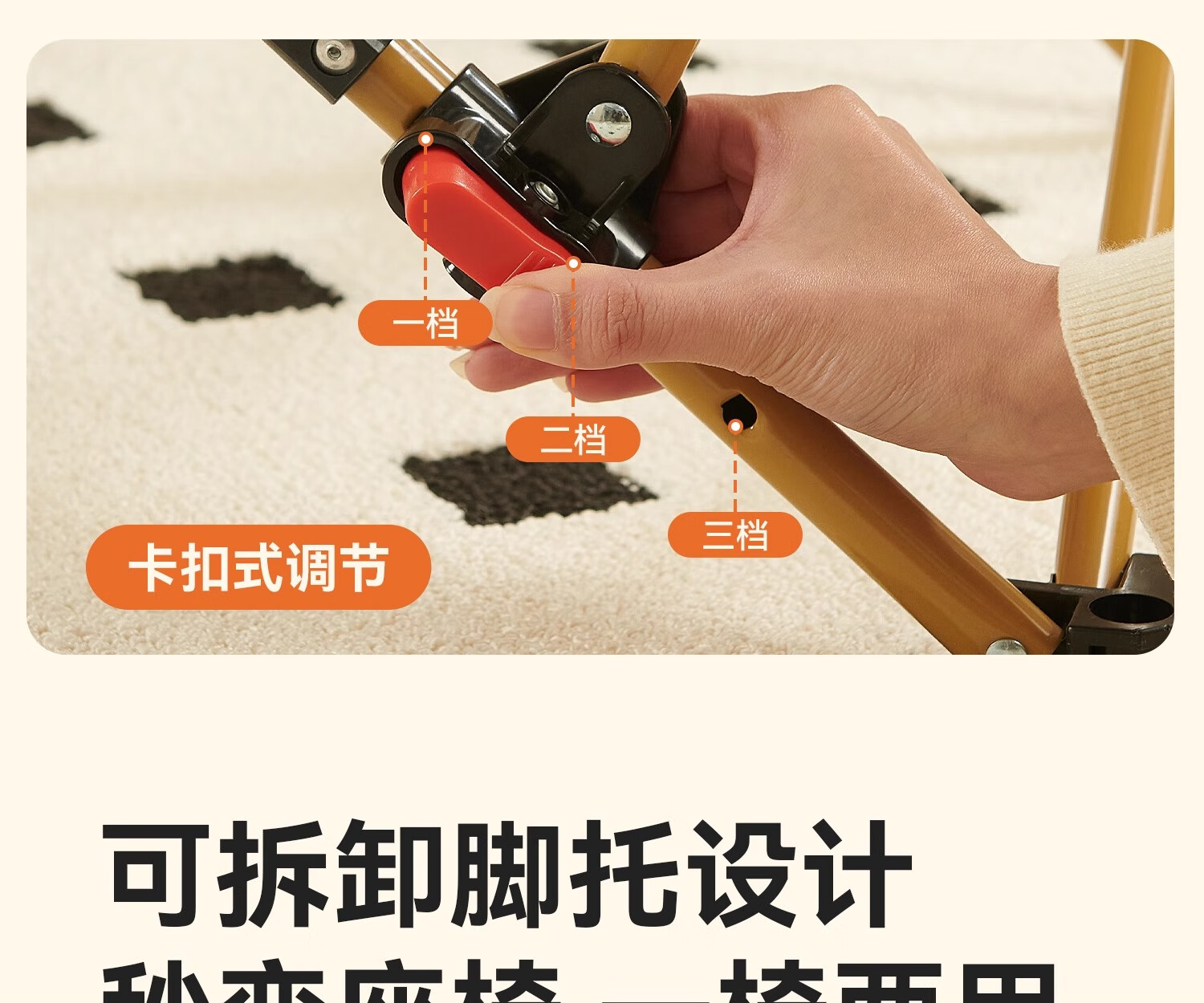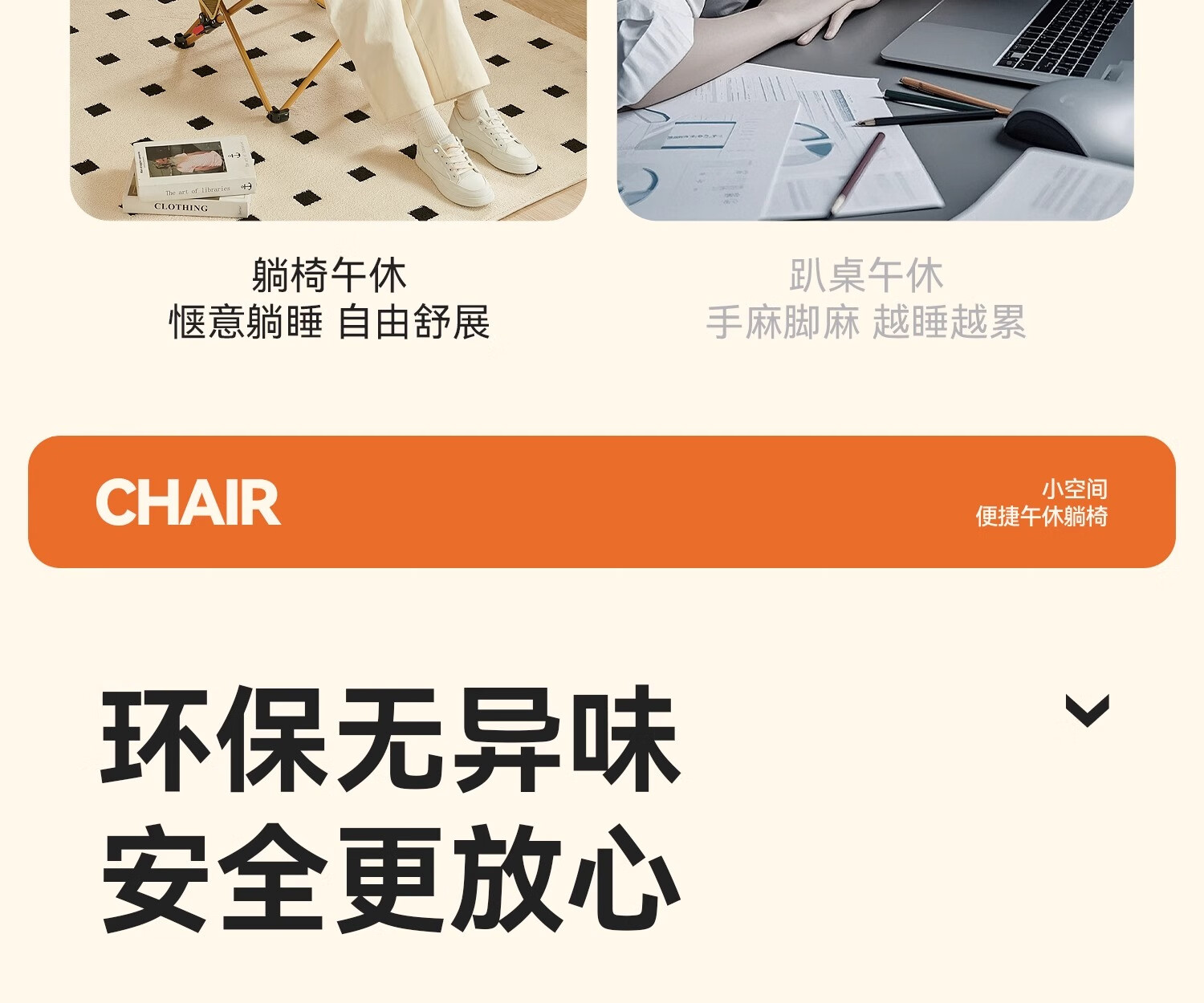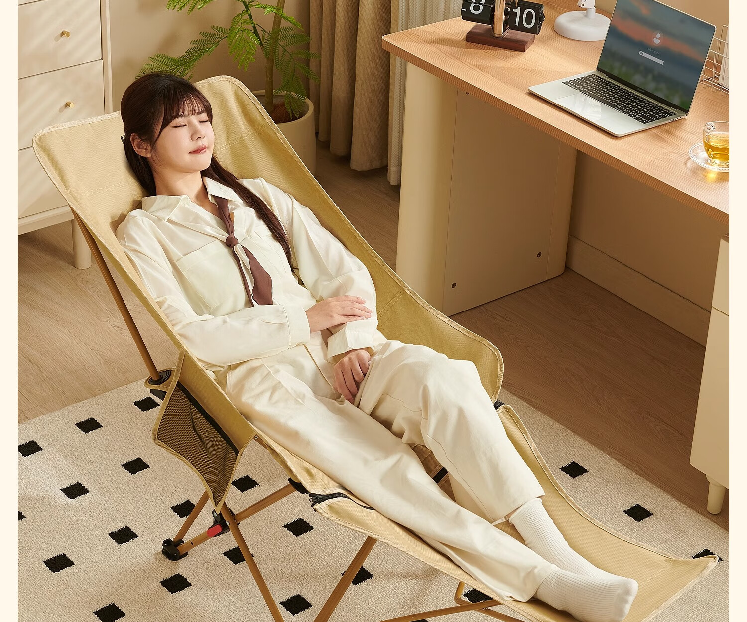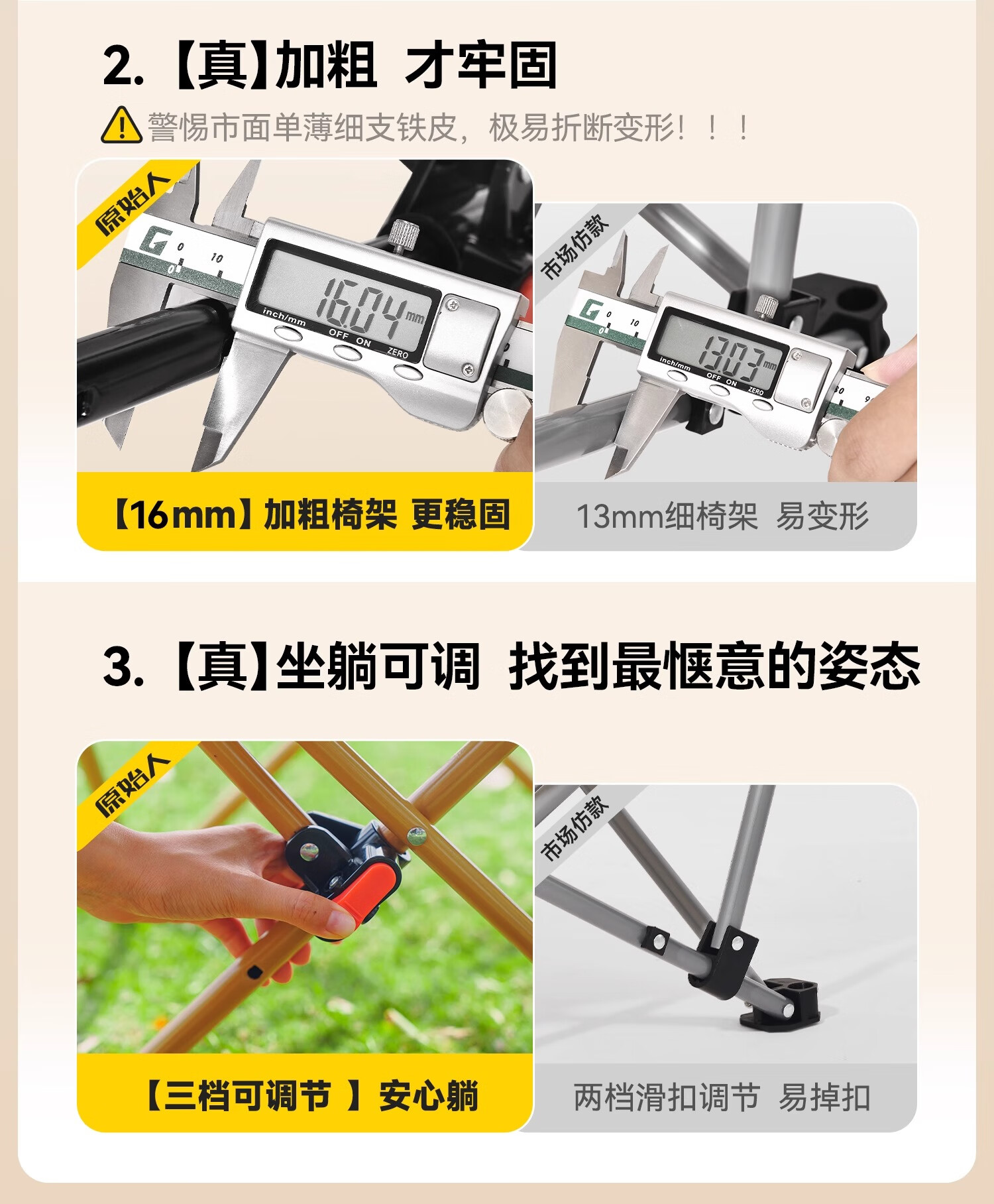 原始人月亮椅户外便携躺椅可折叠办公室午休床新款坐睡两用家用靠背椅子 卡其色加高款-三档调节