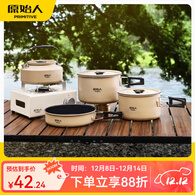 原始人户外锅具便携烧水壶露营炊具野炊装备用品野营套锅套装 【高颜值不粘锅】中号煎锅