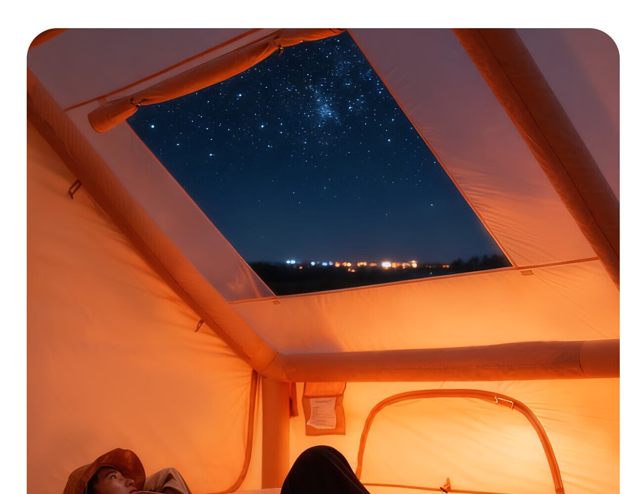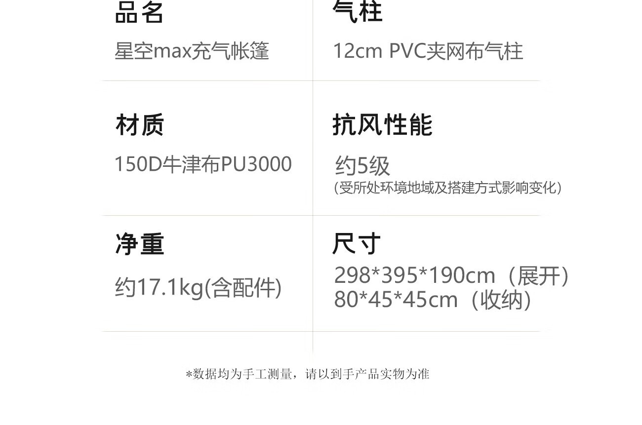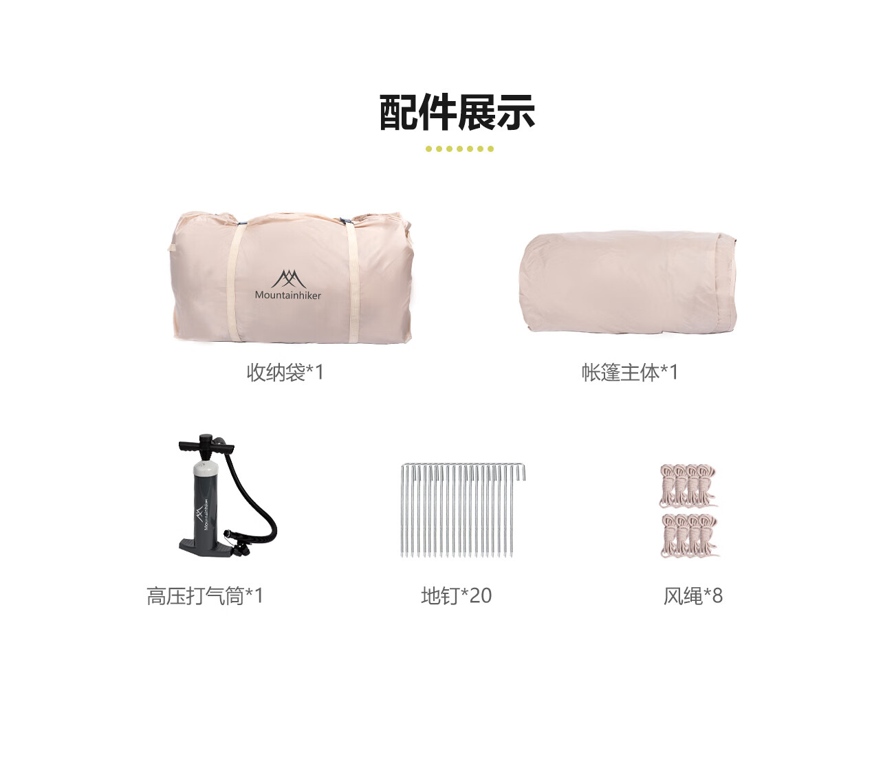 山之客(MOUNTHIKER)星空max充气帐丨免安装带天窗大空间通风透气家庭户外露营过夜帐 星空max充气帐篷--卡其