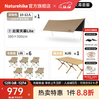 Naturehike挪客云霄黑胶天幕户外露营野营野餐防雨大空间聚会防晒遮阳篷装备 黑胶六边形17㎡/6人桌椅野餐基础套餐