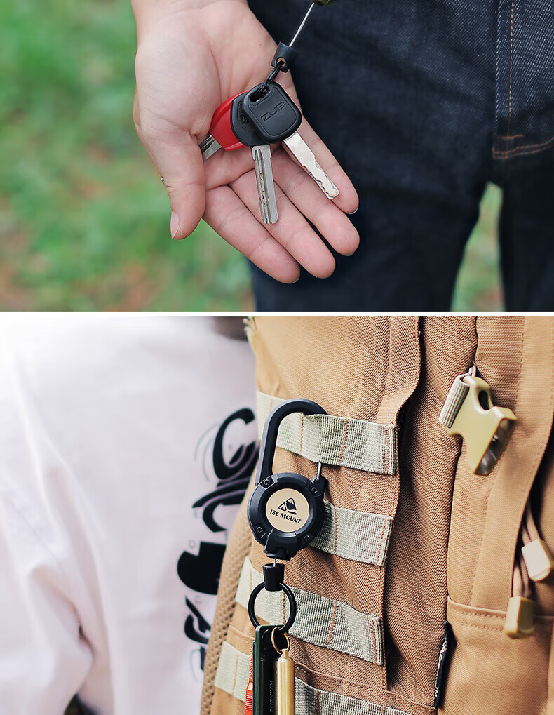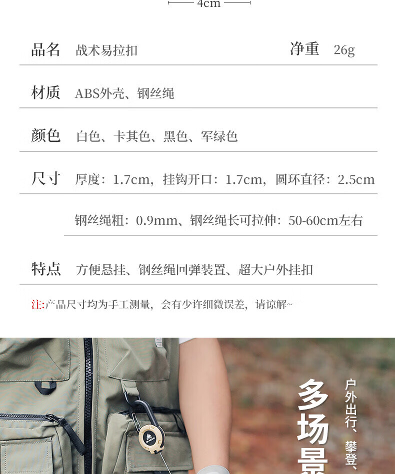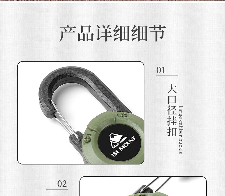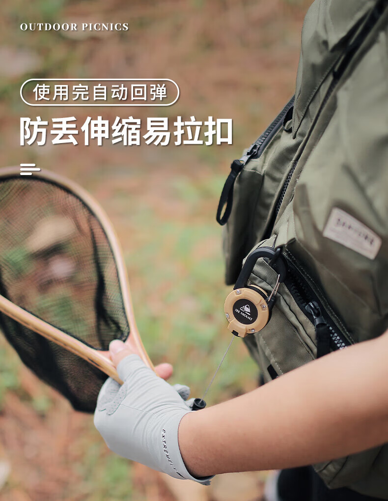 伸缩扣战术易拉扣户外钢丝绳多功能路亚扣钥匙扣露营高回弹防丢绳 户外登山扣-卡其色-1个(袋装) 无规格