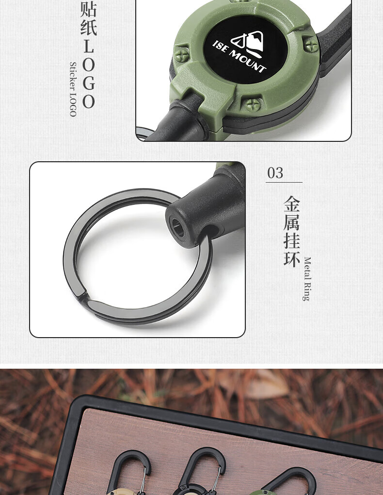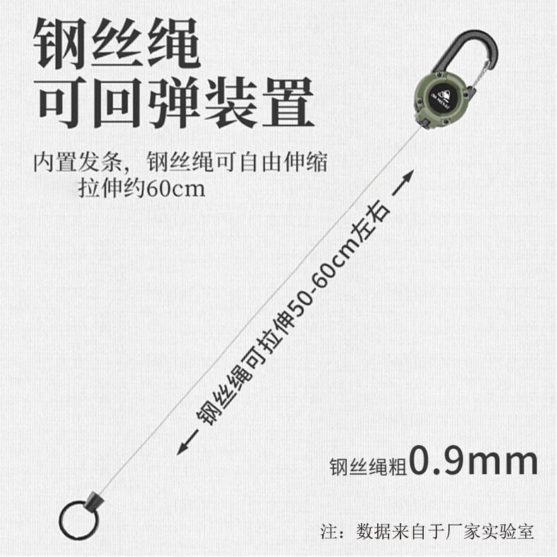 伸缩登山扣路亚挂钩失手绳多功能金属易拉扣钢丝绳钥匙扣防丢防盗 升级款带贴纸【卡其色】 方便悬挂/自动回弹