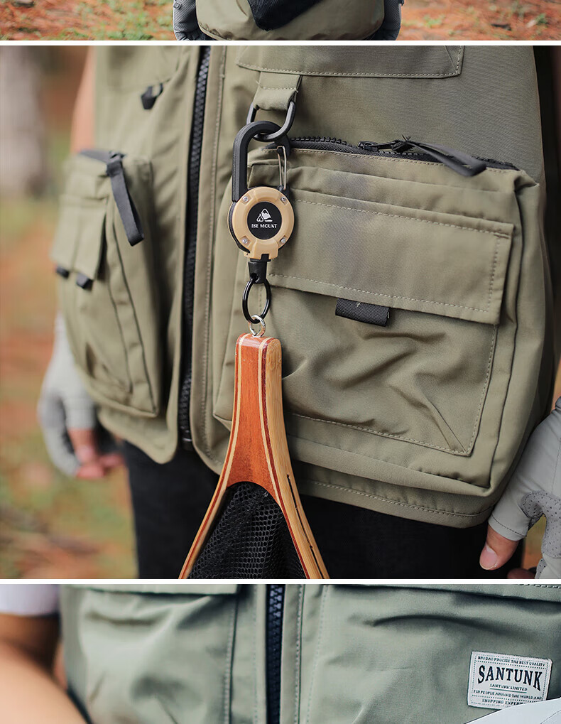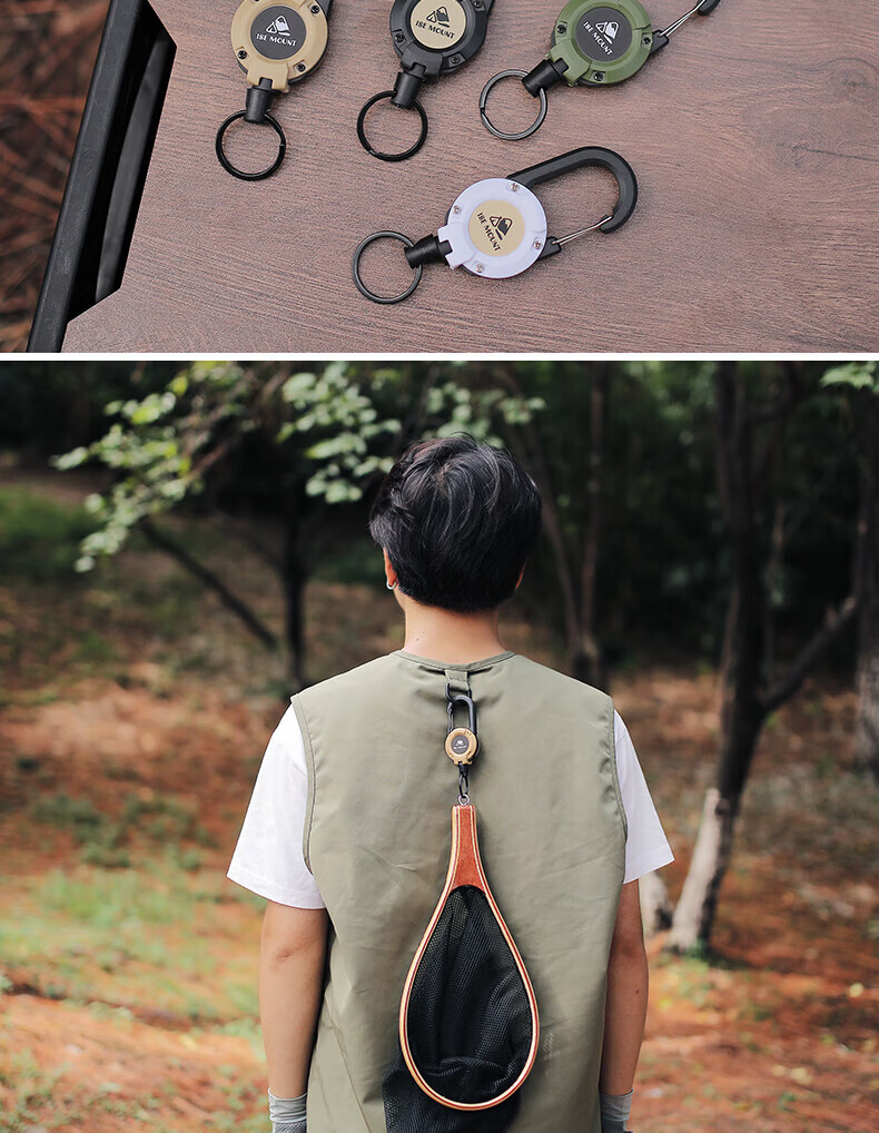 原始人路亚磁吸钢丝伸缩扣收缩绳防丢挂扣回弹升缩拉绳自动钥匙扣 卡其色-圆