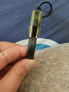 收到,不错。颜值在线。果然是钢丝绳。用来挂交通卡的。旁边那个蓝色的是原来的胸卡牌子上拆下来的。是线绳,拉了不到一个月就磨断了。这个估计能用上个几年。