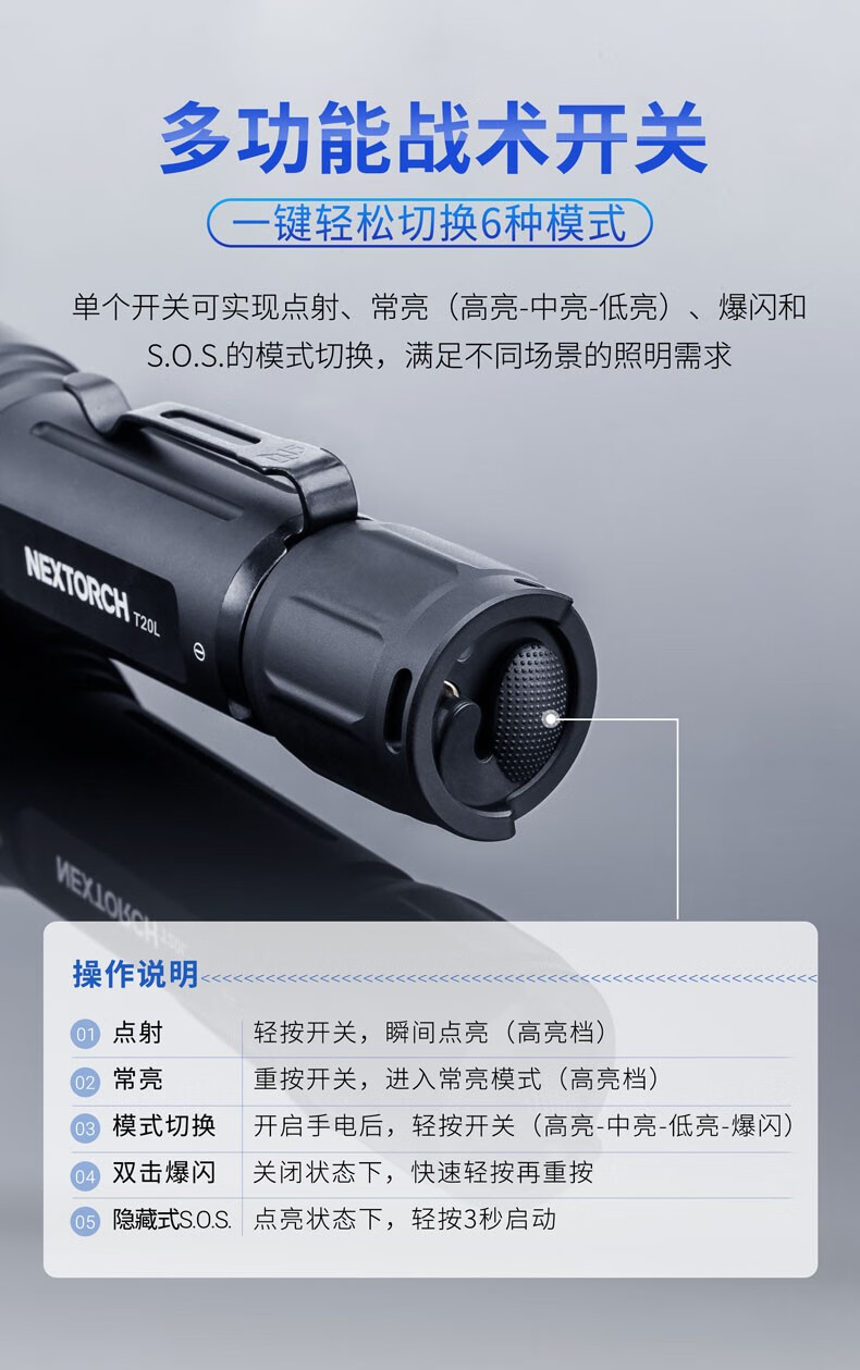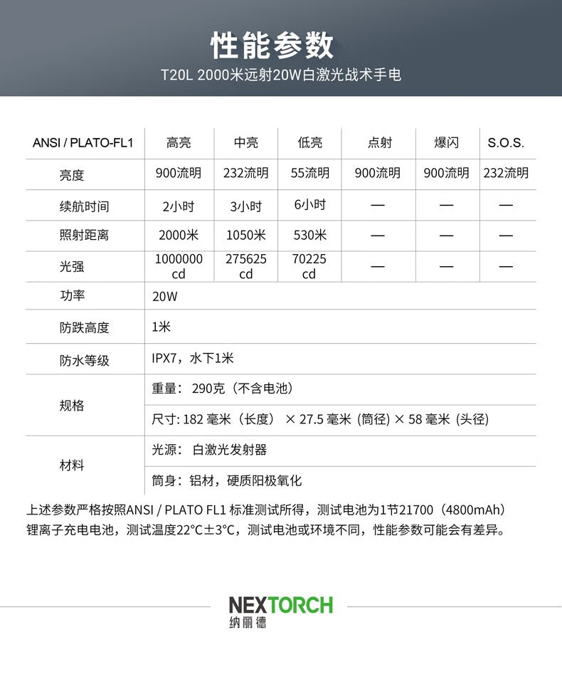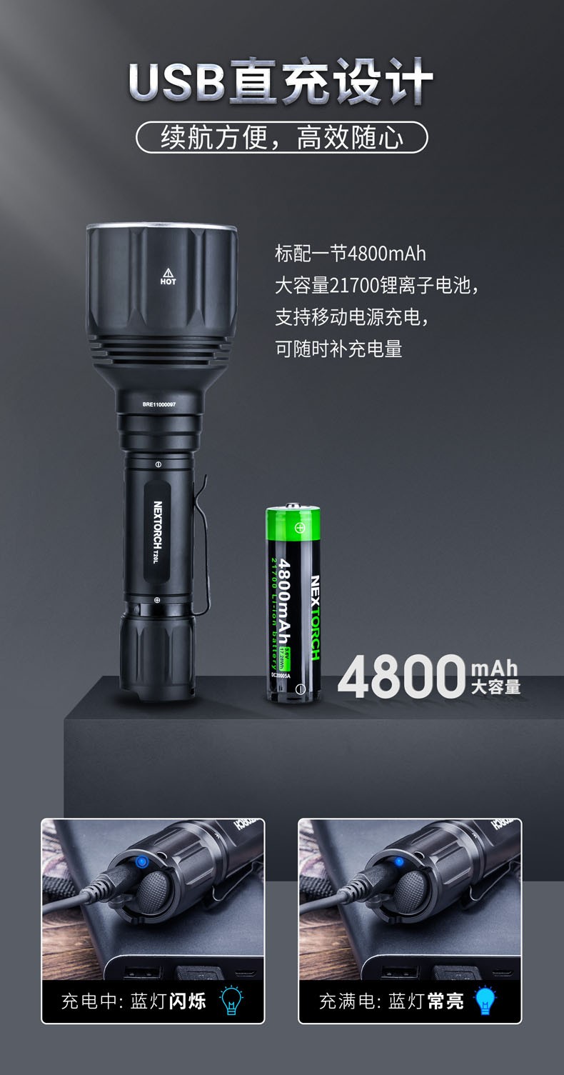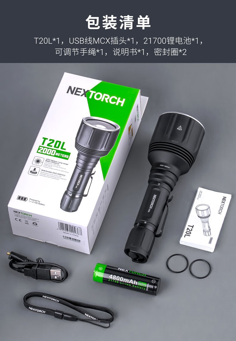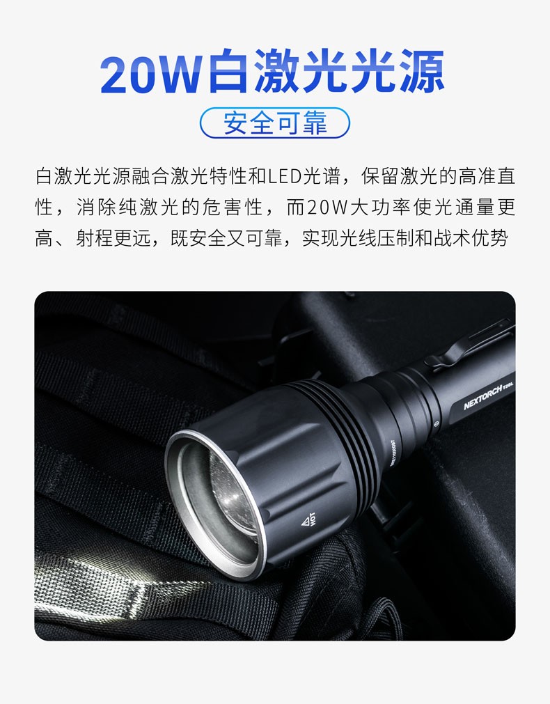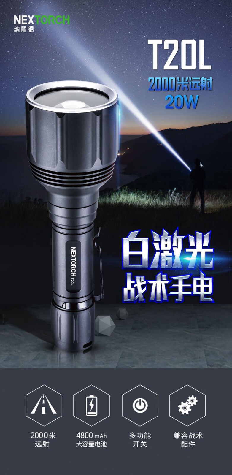 纳丽德(NEXTORCH)T20L白激光眩目手电聚光远射战术爆闪直充防水户外搜索救援应急灯 T20L标配含电池