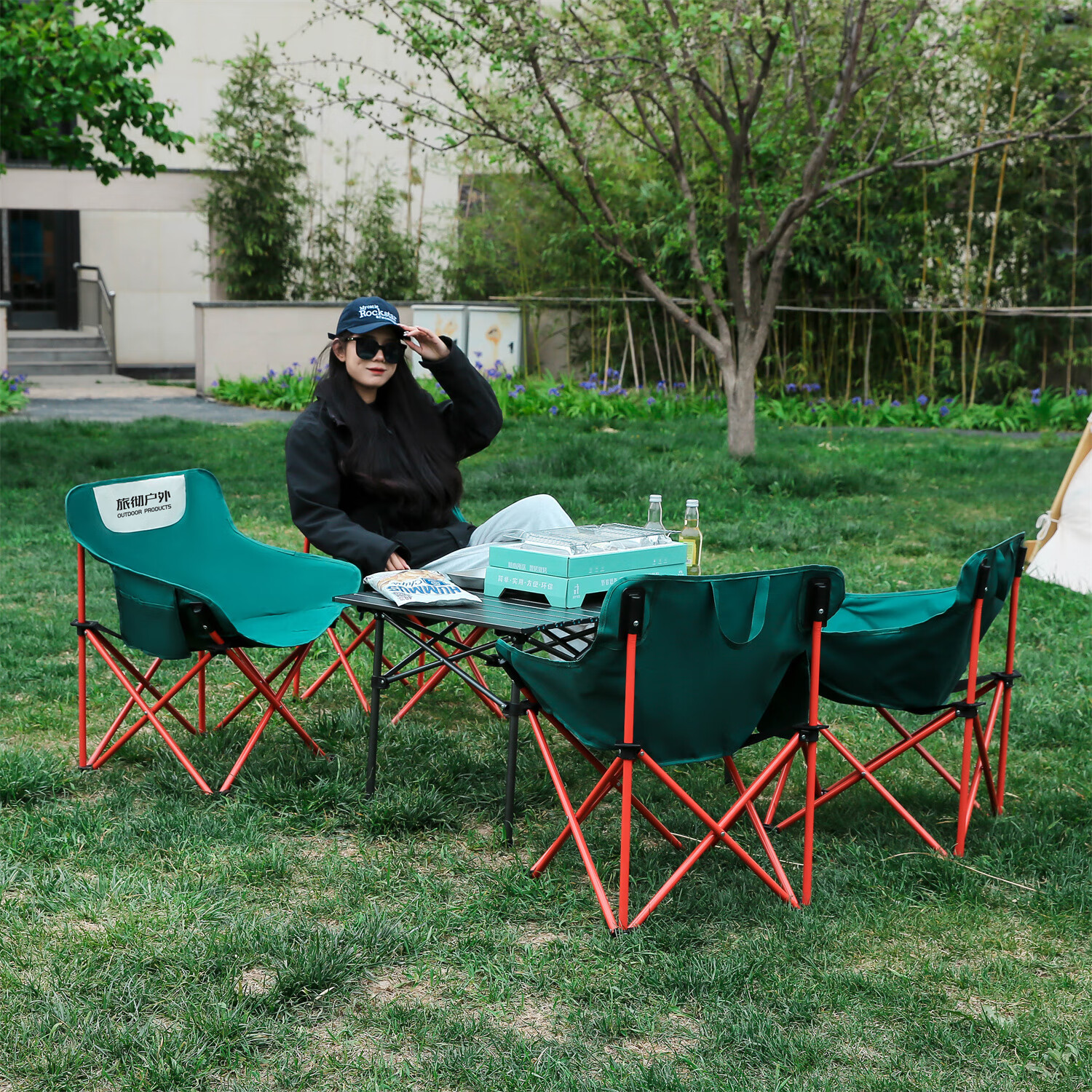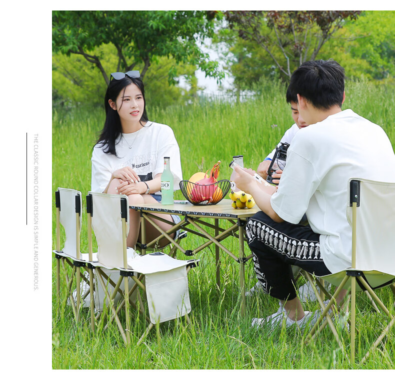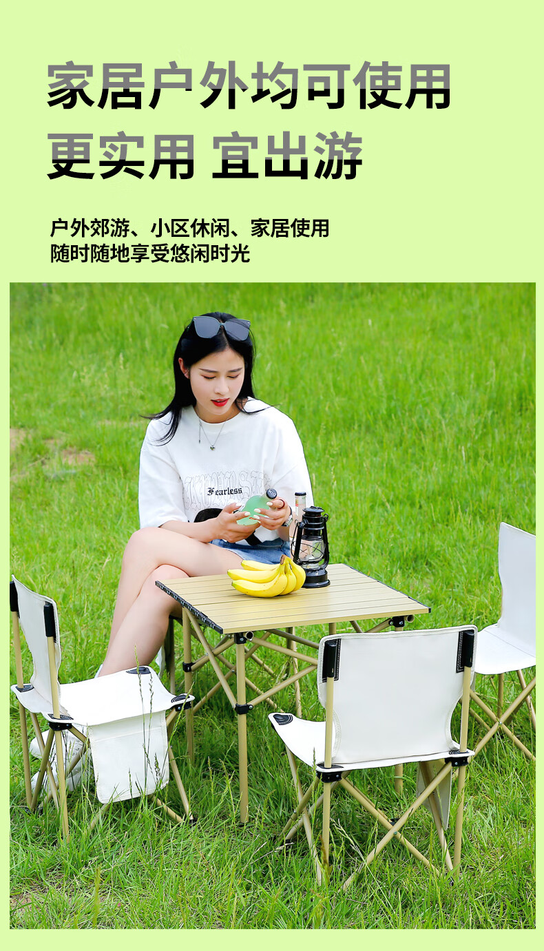 户外折叠椅子便携露营野餐月亮椅子蛋卷桌椅套装写生椅钓鱼椅 米色方桌