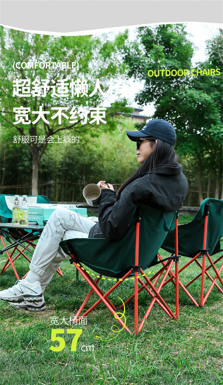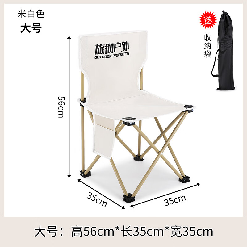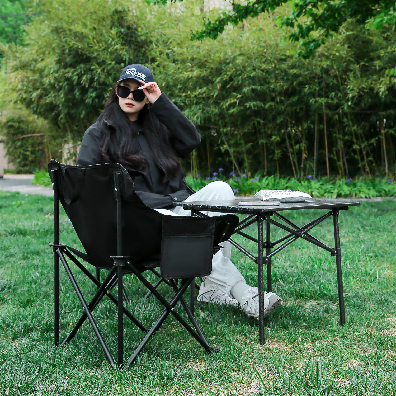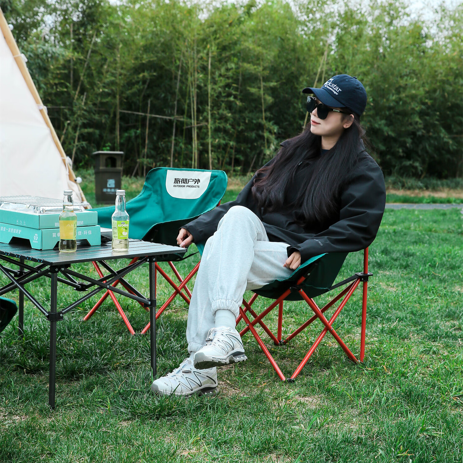 户外折叠椅子便携露营野餐月亮椅子蛋卷桌椅套装写生椅钓鱼椅 米色方桌