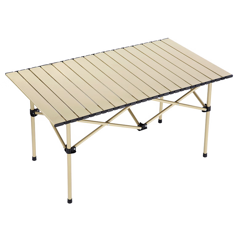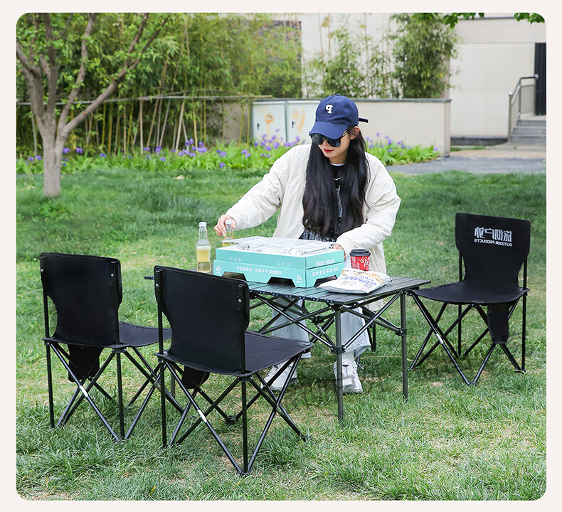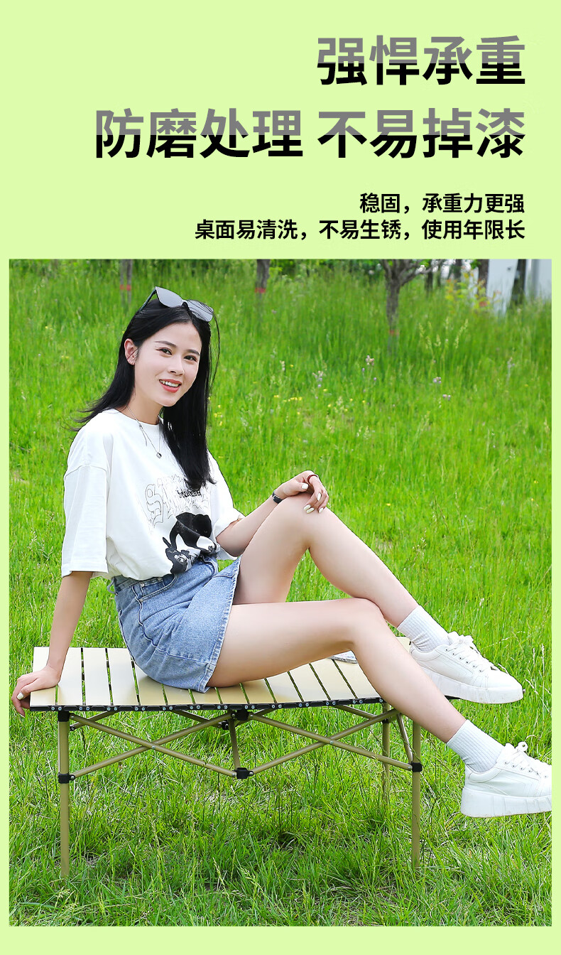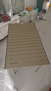 出去露营的时候买的,虽然价格不贵,但是很结实,桌腿杆子很粗,很稳,桌面是那种蛋糕卷的那种,组合起来很方啊,收纳起来也很方便,还有一个收纳盒!