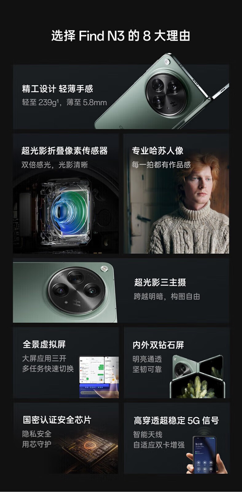 OPPOFind N3 超光影三主摄国密认证芯片 5G折叠屏 潜航黑[下单前请咨询客服] 12GB+512GB 正品已运行版本丨详情咨询客服