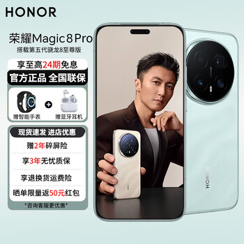 荣耀Magic8 Pro 新品5G旗舰手机 谢霆锋同款 2亿长焦超夜神 第五代骁龙8至尊版 AI手机荣耀magic8pro 天青色【谢霆锋同款】 12GB+256GB 官方标配