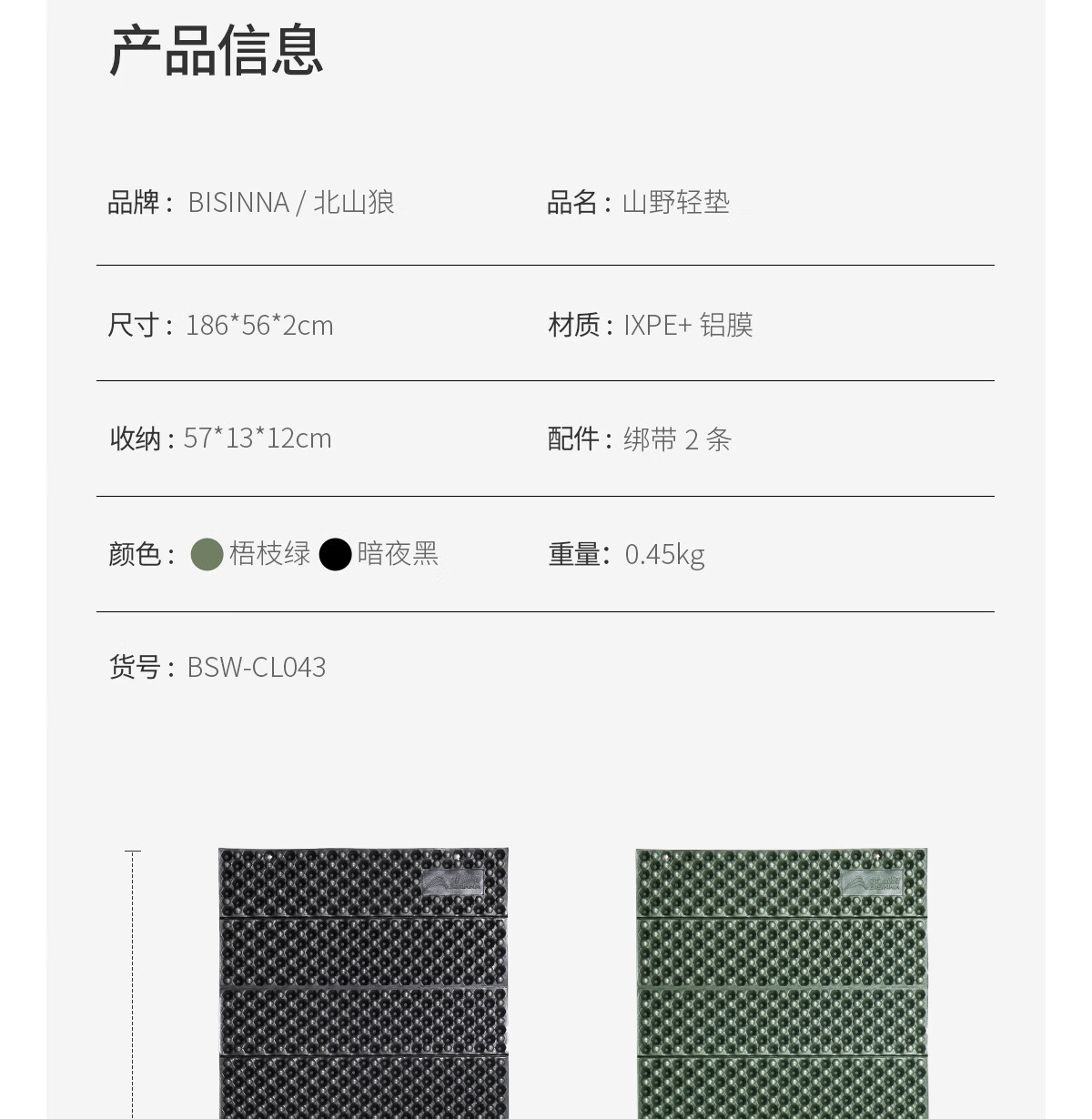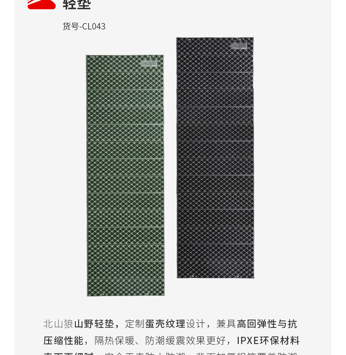 北山狼 蛋巢防潮垫 户外露营蛋槽垫睡垫折叠坐垫地垫 防潮坐垫 基础2.2款暗夜黑-【1个装】