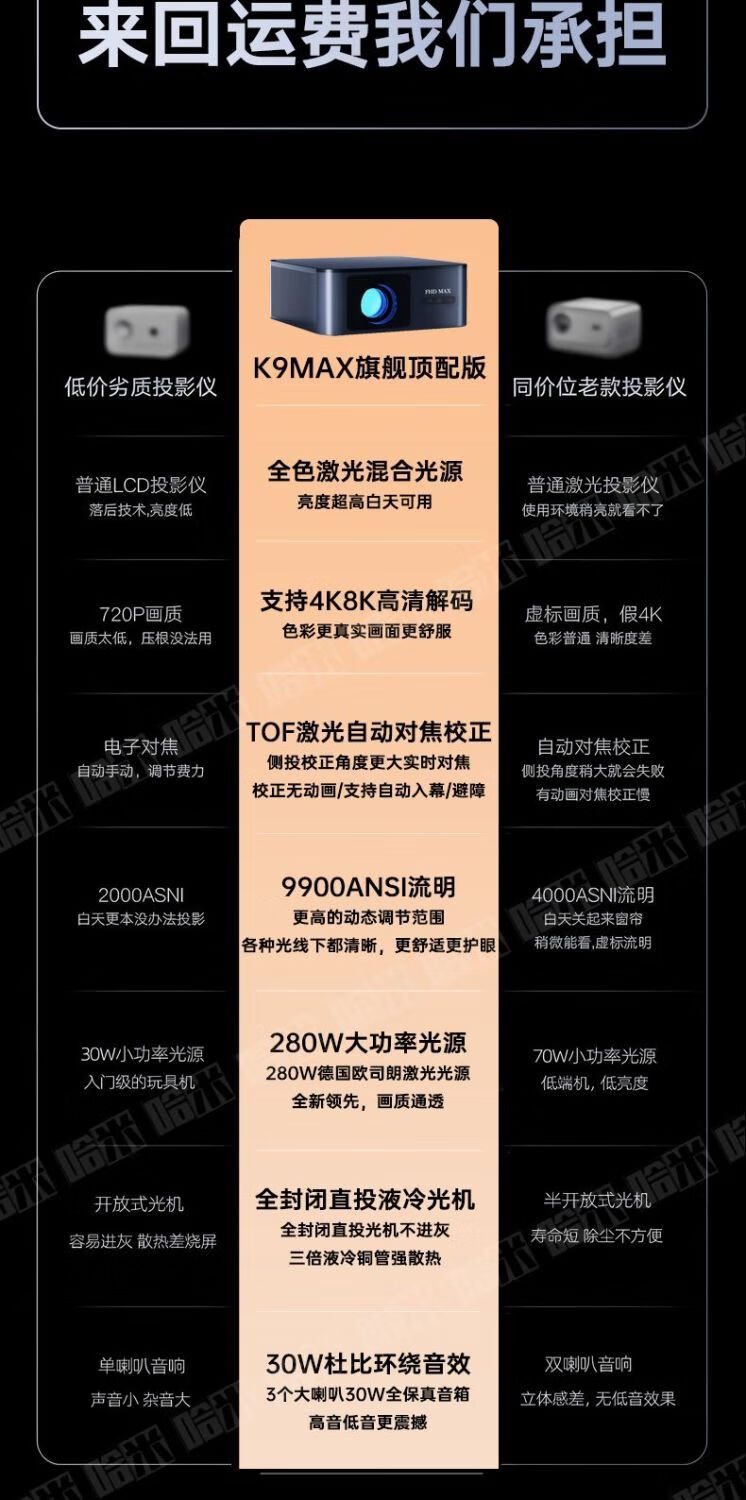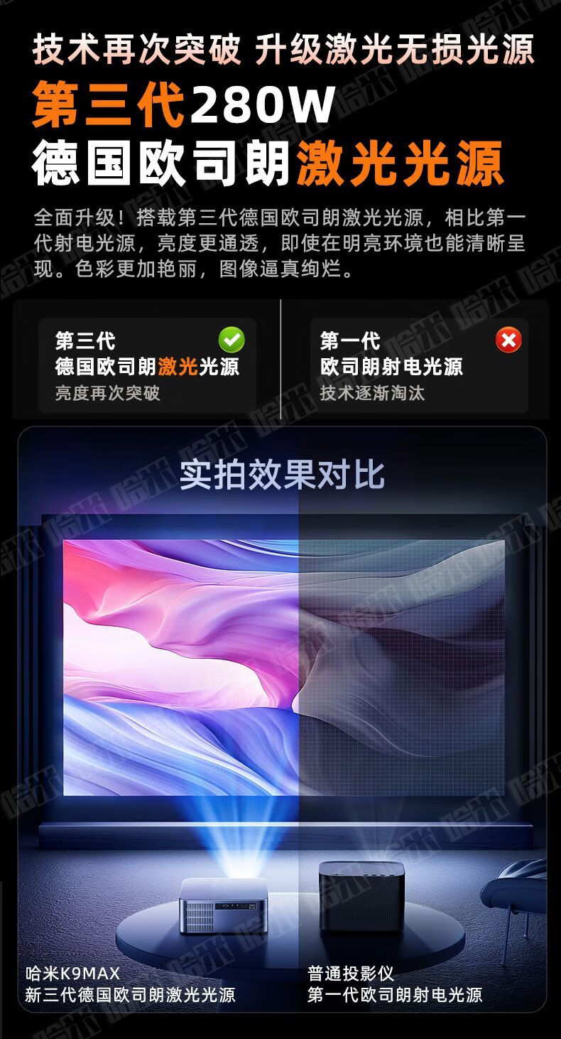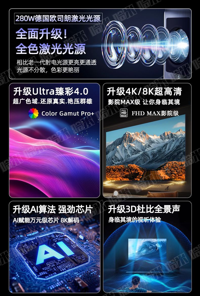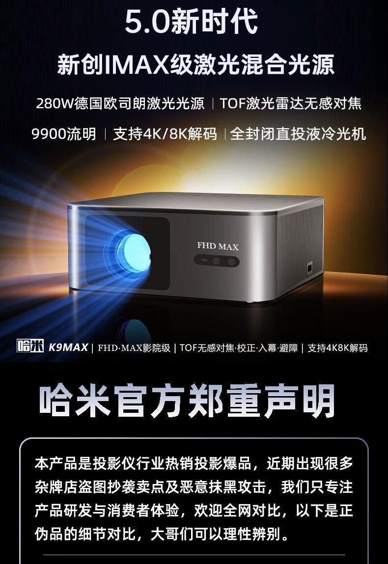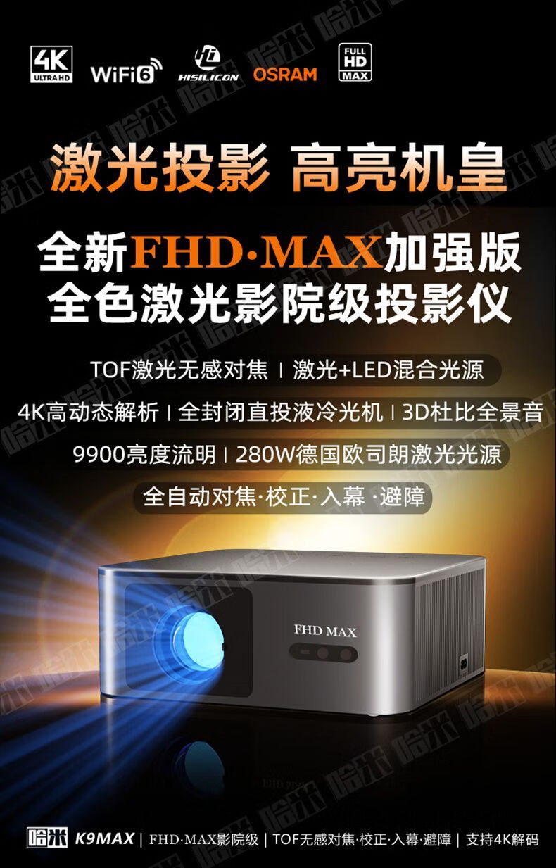 激光投影2025全新FHDMAX加强版高清影院级投影仪全封闭光机4K投影 大功率高亮千元机皇